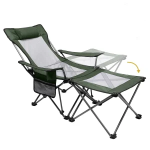 Chaise longue de jardin pliante verte SMILODON avec repose-pieds