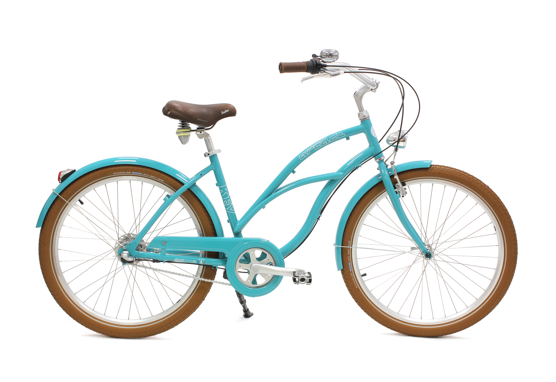 Cadre rouge, selle, poignées et pneu marron. Roues 26″