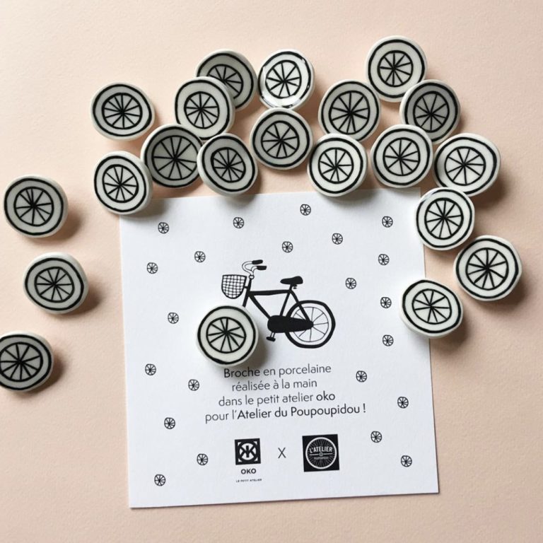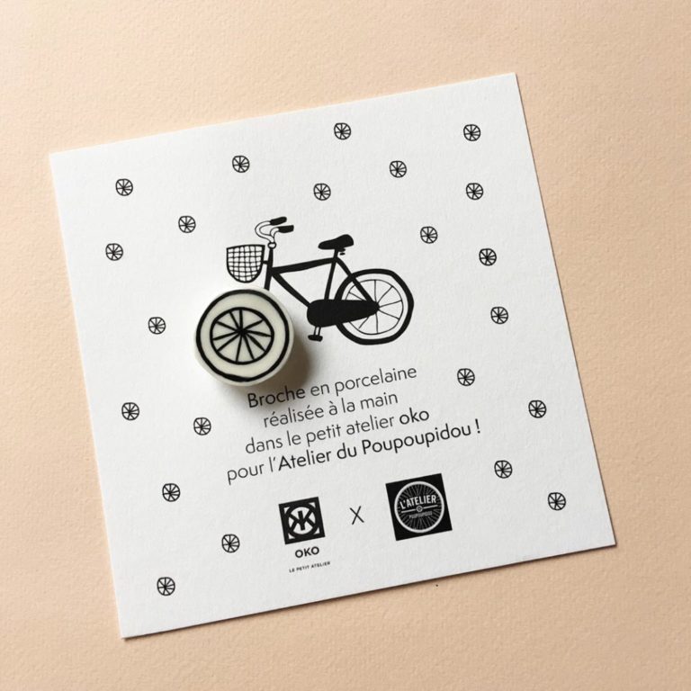 La broche en porcelaine est entièrement façonnée à la main dans le petit atelier OKO à Clisson (à coté de Nantes)