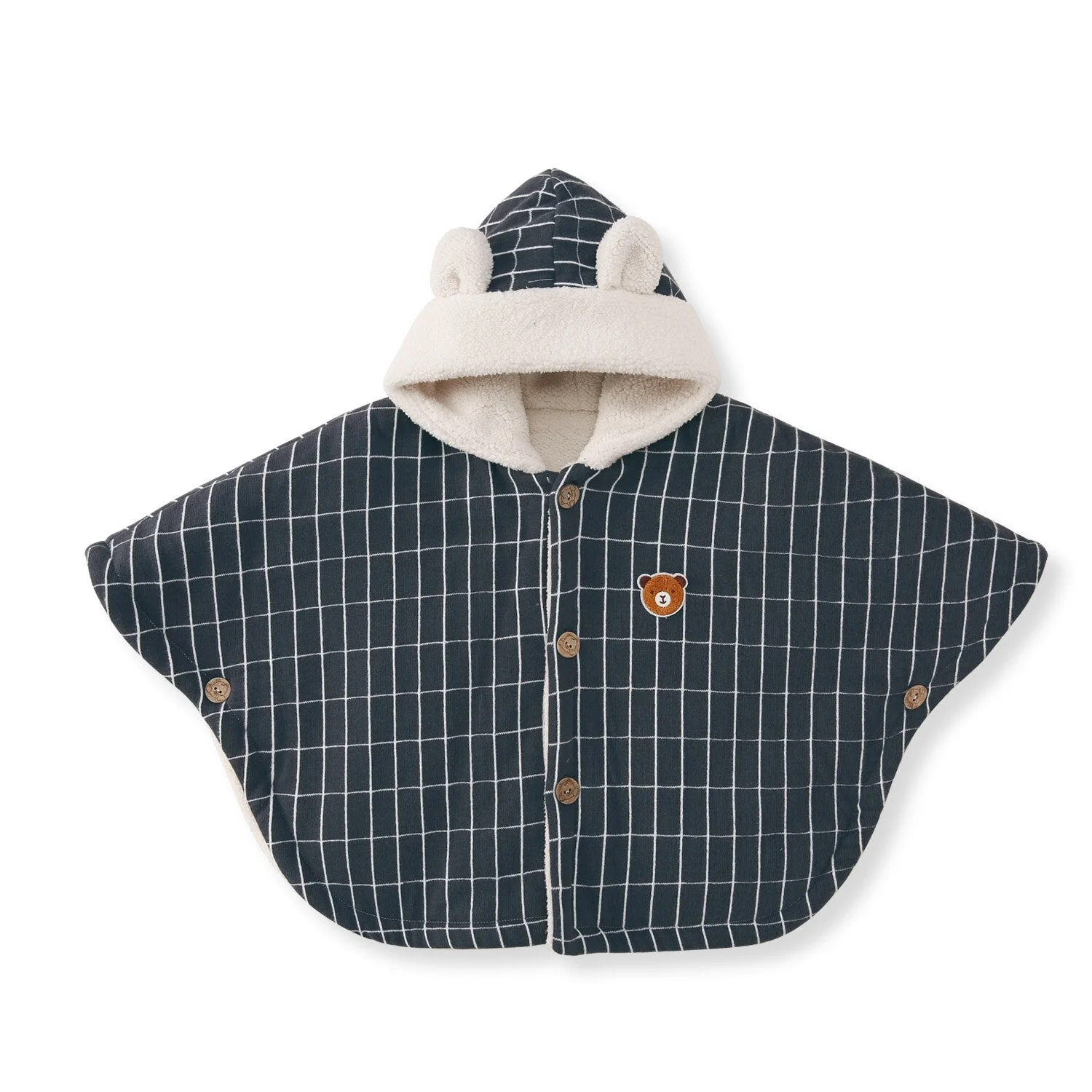 Emmitouflez votre enfant dans cette confortable cape polaire pour le réchauffer efficacement cet hiver ! Ce poncho possède une capuche avec oreille d’ours pour bien protéger la tête de votre petit bout du froid tout en le rendant encore plus mignon qu’il ne l’est déjà. Le tissu chaud et doux de cette cape grise à carreaux pour bébé enveloppera votre enfant dans un cocon de confort. Il se ferme à l’avant et sur les côtés grâce à des boutons et présente une tête d’ours brodée à l’avant pour une touche encore plus chou ! 🐻