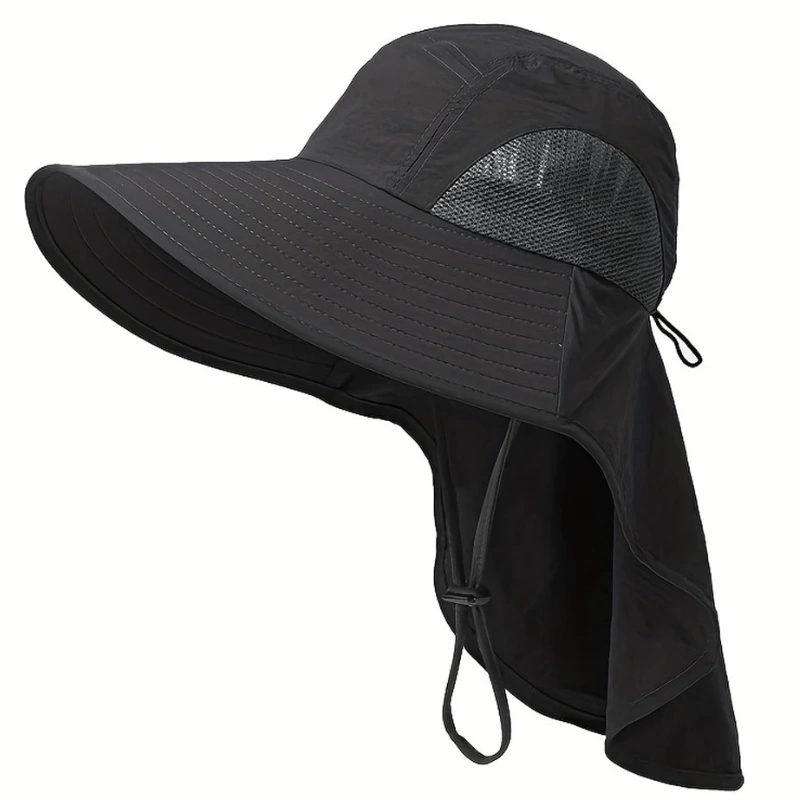 Casquette parapluie bob imperméable anti UV avec protège nuque et élastique serre-tête plus aération latérale