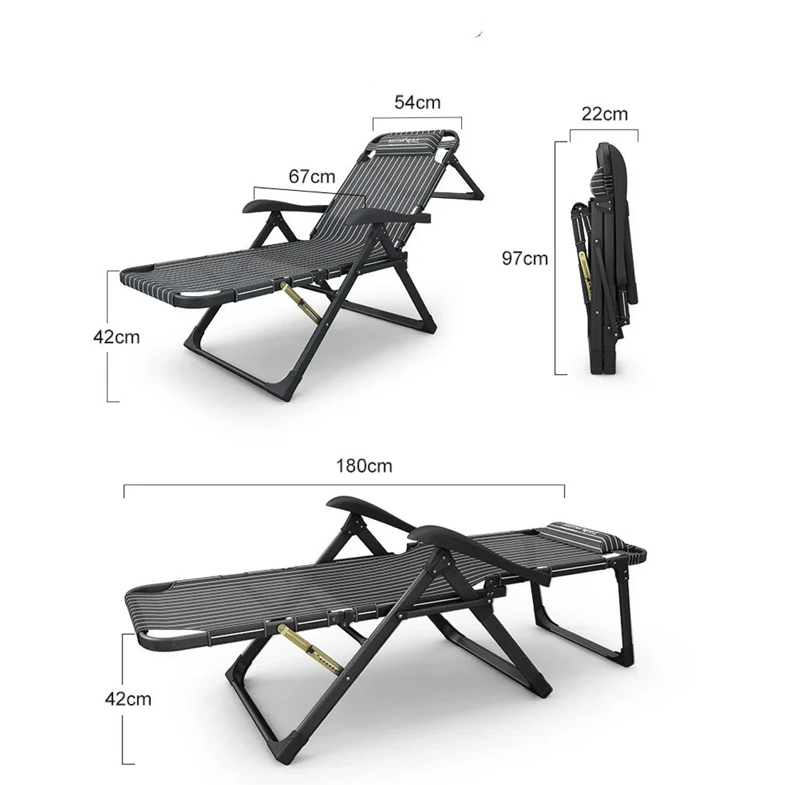 Pliante et Pratique: Cette chaise longue se plie facilement pour un rangement et un transport aisés, ce qui en fait un choix pratique pour les activités en extérieur telles que le camping, les pique-niques ou les journées à la plage.
