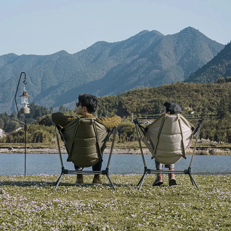 Contrairement aux chaises pliantes classiques, ce modèle Naturehike adopte une structure triangulaire suspendue, qui permet une bascule fluide et silencieuse. L’assise est légèrement flottante, ce qui donne une sensation de légèreté dès que vous vous installez. Que ce soit au bord d’un lac ou à l’ombre d’un pin, elle s’adapte à votre environnement comme un cocon de repos.