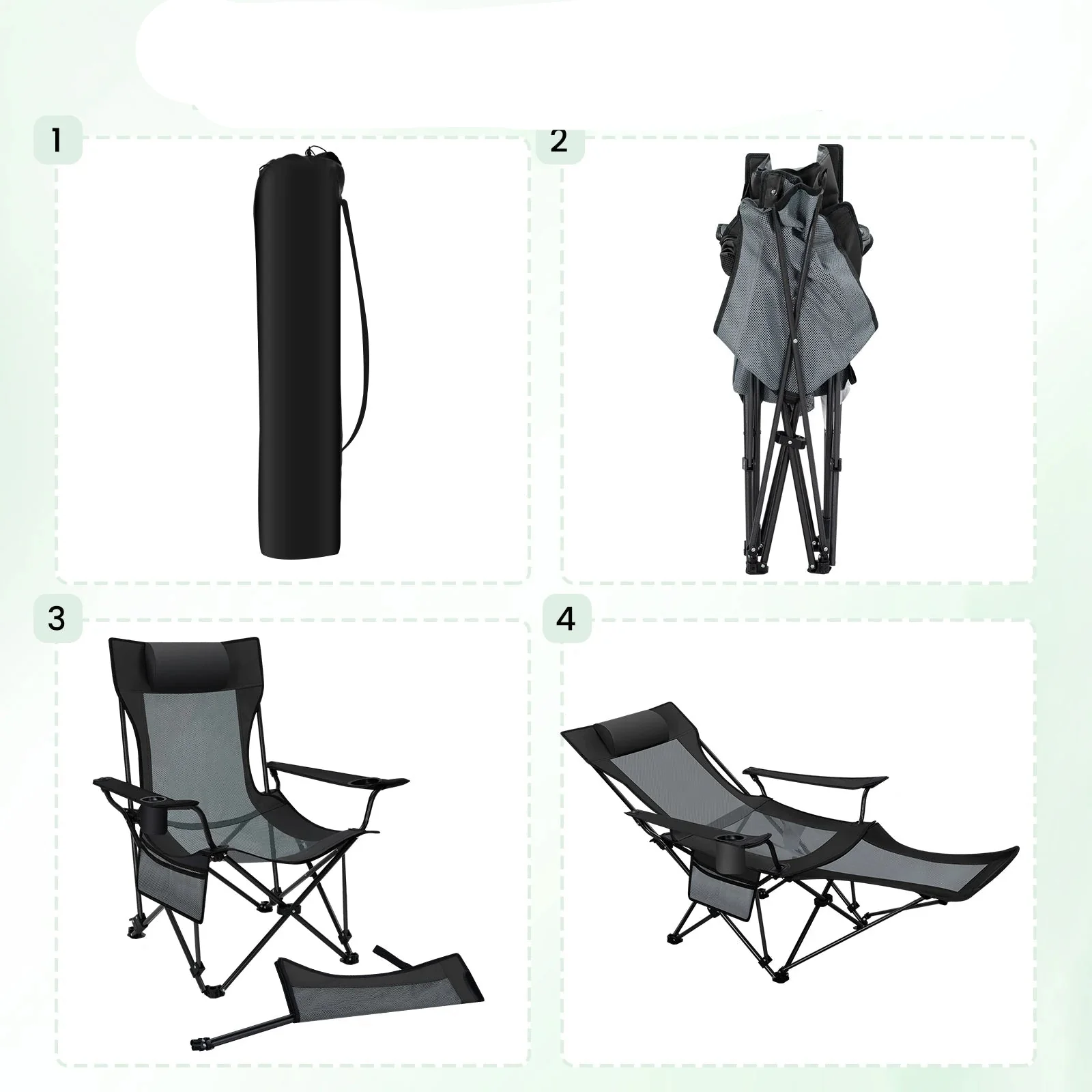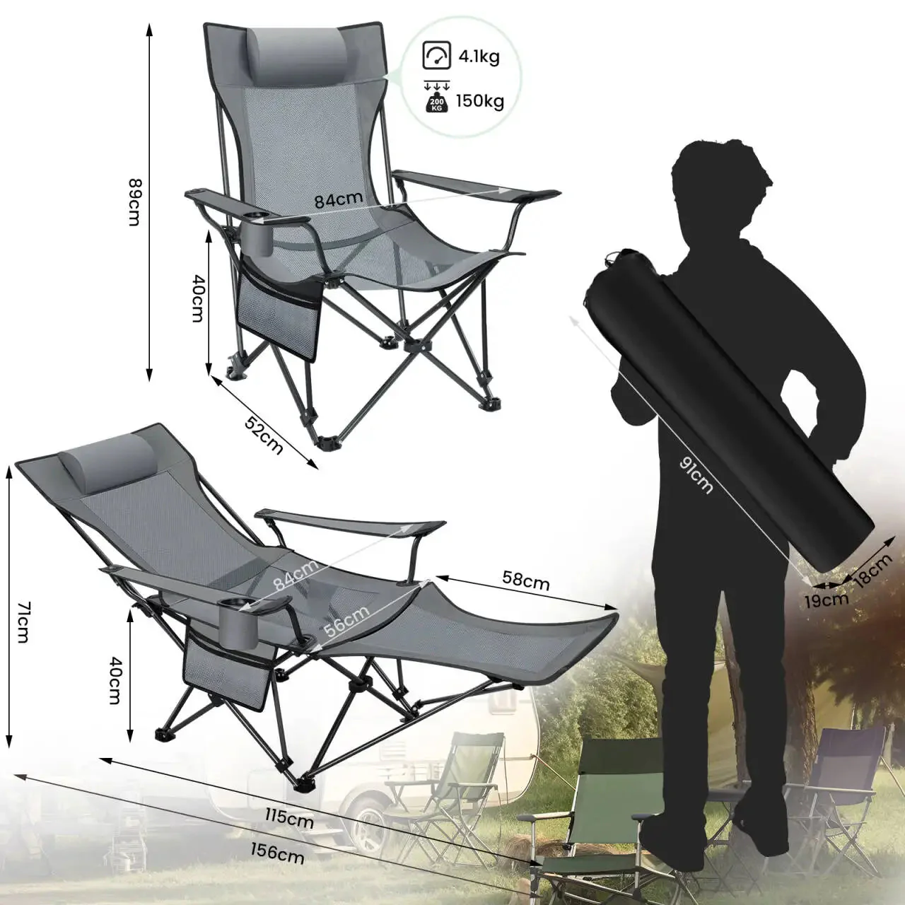 Les accoudoirs rigides permettent de vous relever facilement, tandis qu’un porte-gobelet intégré vous permet de garder votre boisson à portée de main. Une petite pochette latérale accueille téléphone, clés ou lunettes de soleil. Et pour un confort absolu, un coussin repose-tête moelleux est inclus, parfaitement ajusté à votre nuque.