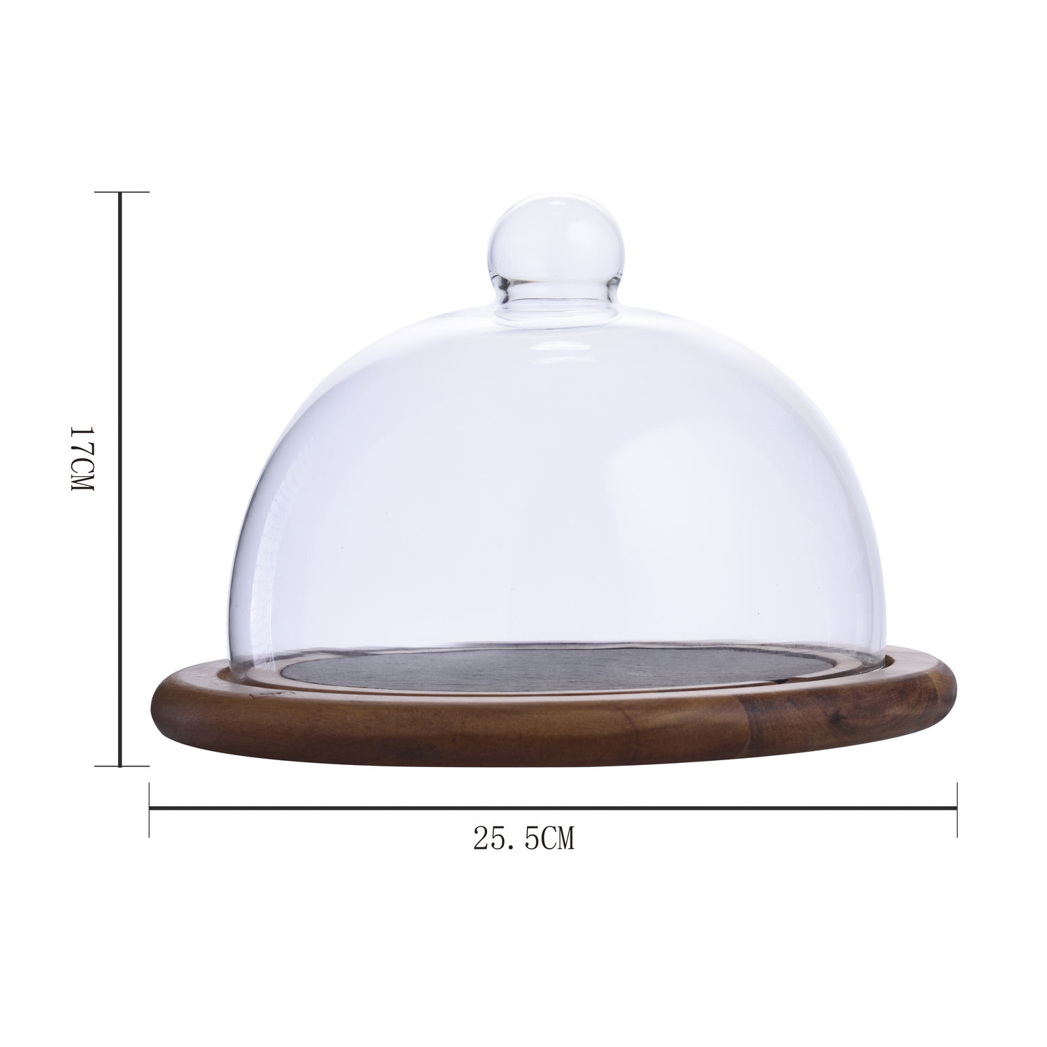Belle présentation des fromages, hors d’œuvres ou gâteaux, avec cette cloche en verre et son support en bois d’acacia, diamètre 18/25 cm – hauteur 20 cm