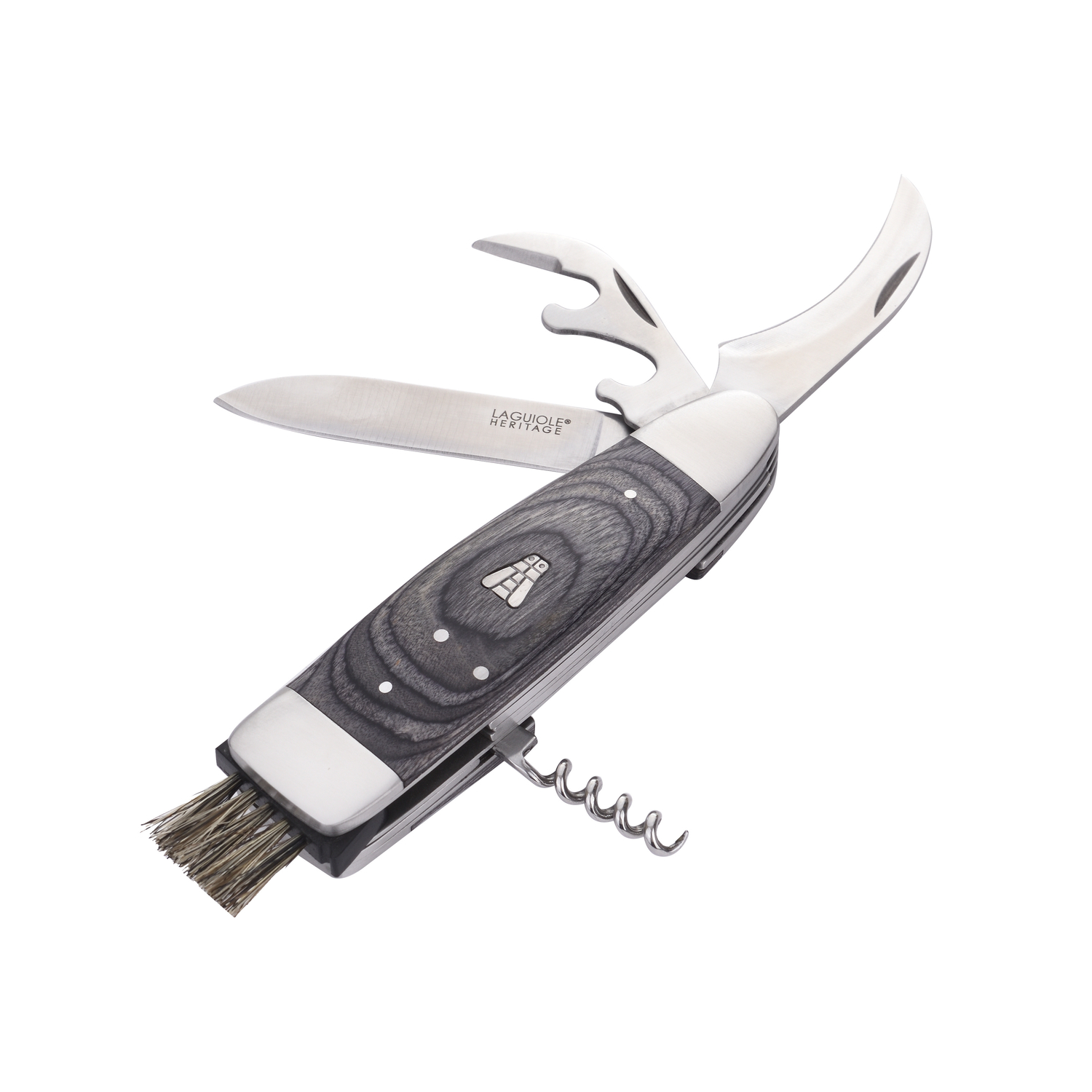 Découvrez le couteau pliant gris pour champignon de Laguiole Héritage, un outil polyvalent parfait pour les amateurs de cueillette avec ses fonctionnalités pratiques et son design élégant, présenté dans un coffret en carton.
