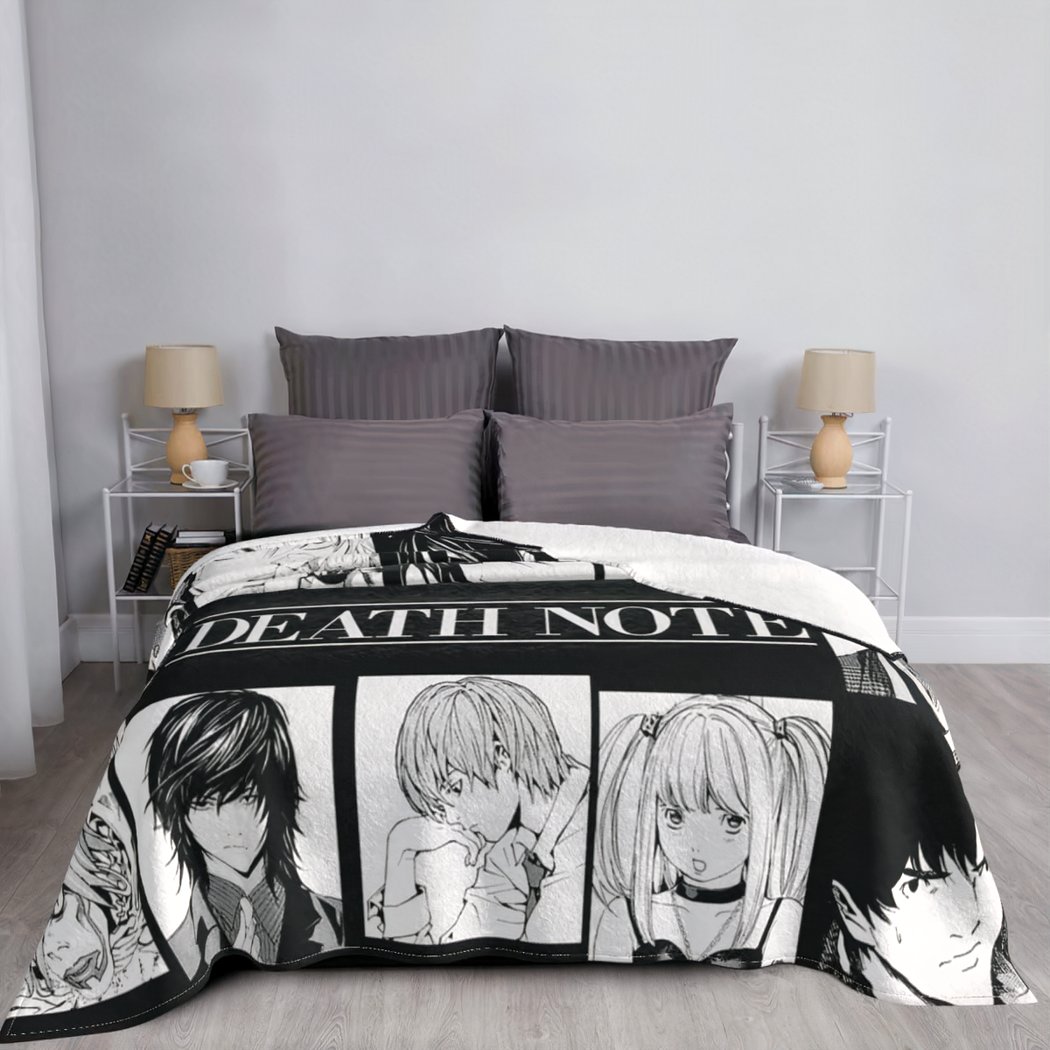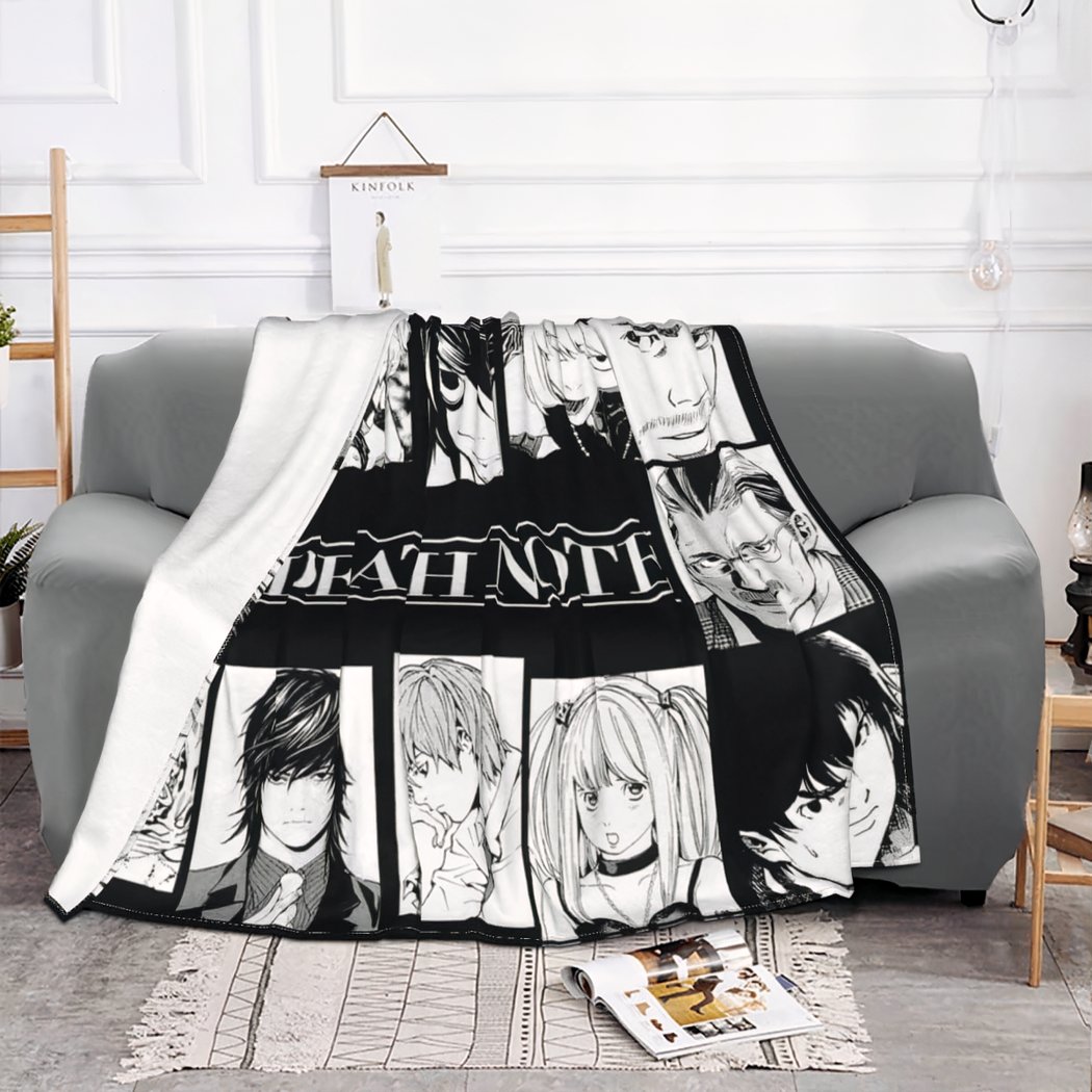Cette superbe couverture manga est imprimée de tous les personnages principaux de Death Note. Un accessoire indispensable pour les fans de cet anime, avec une esthétique graphique, en noir et blanc, comme les page d’un livre. Une couverture polaire qui montrera votre passion pour ce manga tout en vous réchauffant.