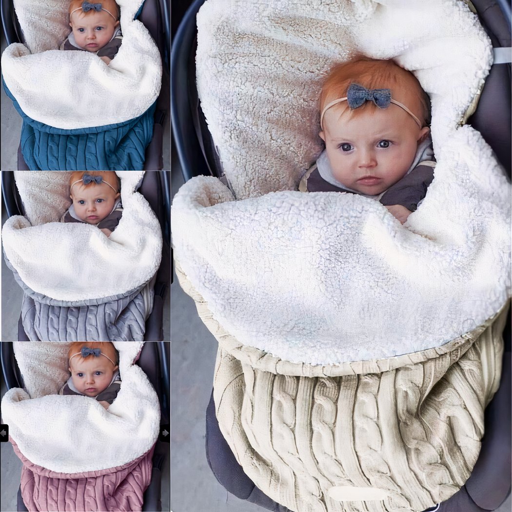 Lorsque vous emmenez bébé en balade il faut penser à bien le couvrir. Avec cette joli couverture façon sac de couchage en tricot et polaire, votre enfant sera bien protégé du froid et également trop craquant. Une couverture polaire adaptée aux sorties en poussette ou landau grâce à sa forme et son format enveloppant.