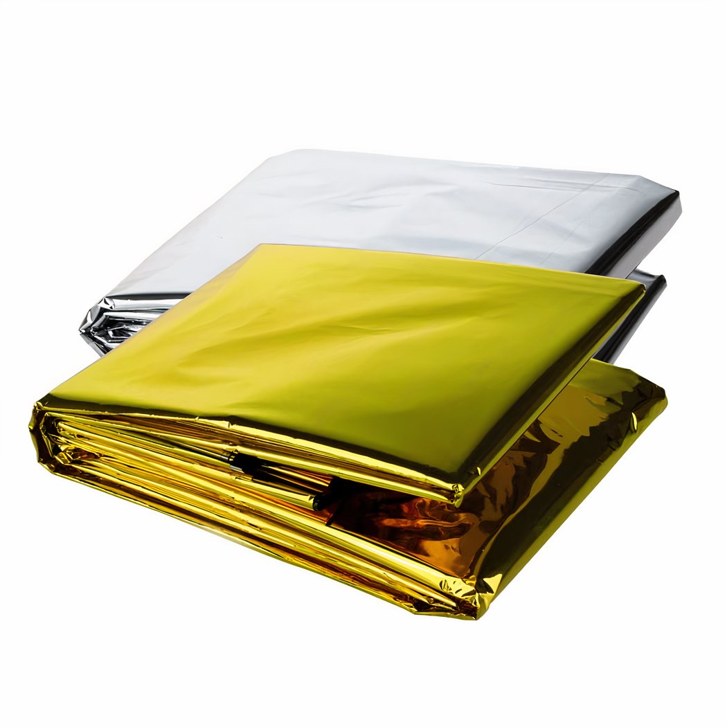 Cette couverture de survie sera un indispensable dans bien des situations. Une couverture thermique à ajouter à votre kit de survie pour vos activités de plein air. Grâce à son format compact, elle se plie très facilement, ayant ainsi une petite taille qui vous permet de la transporter partout. Comme une feuille d’aluminium elle offre une excellente isolation thermique et pourra parer à différentes éventualités ou conditions météorologiques imprévues.