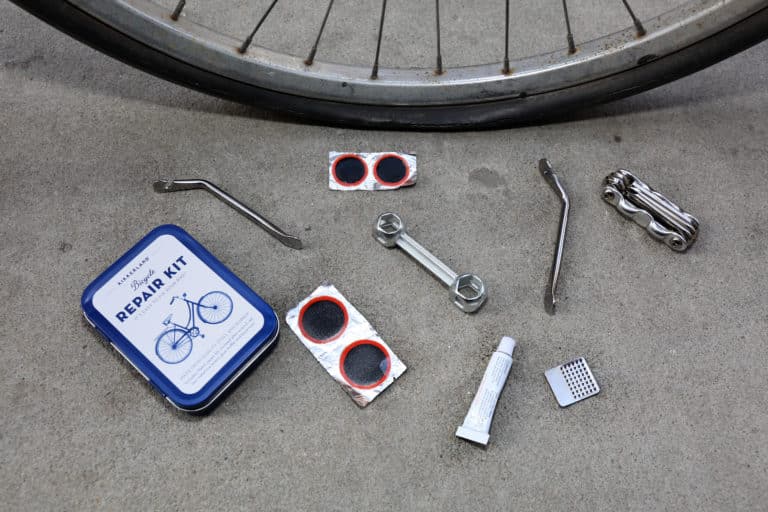 Kit de réparation pour réparer votre vélo en cas de crevaison. Dans la jolie boite métal.