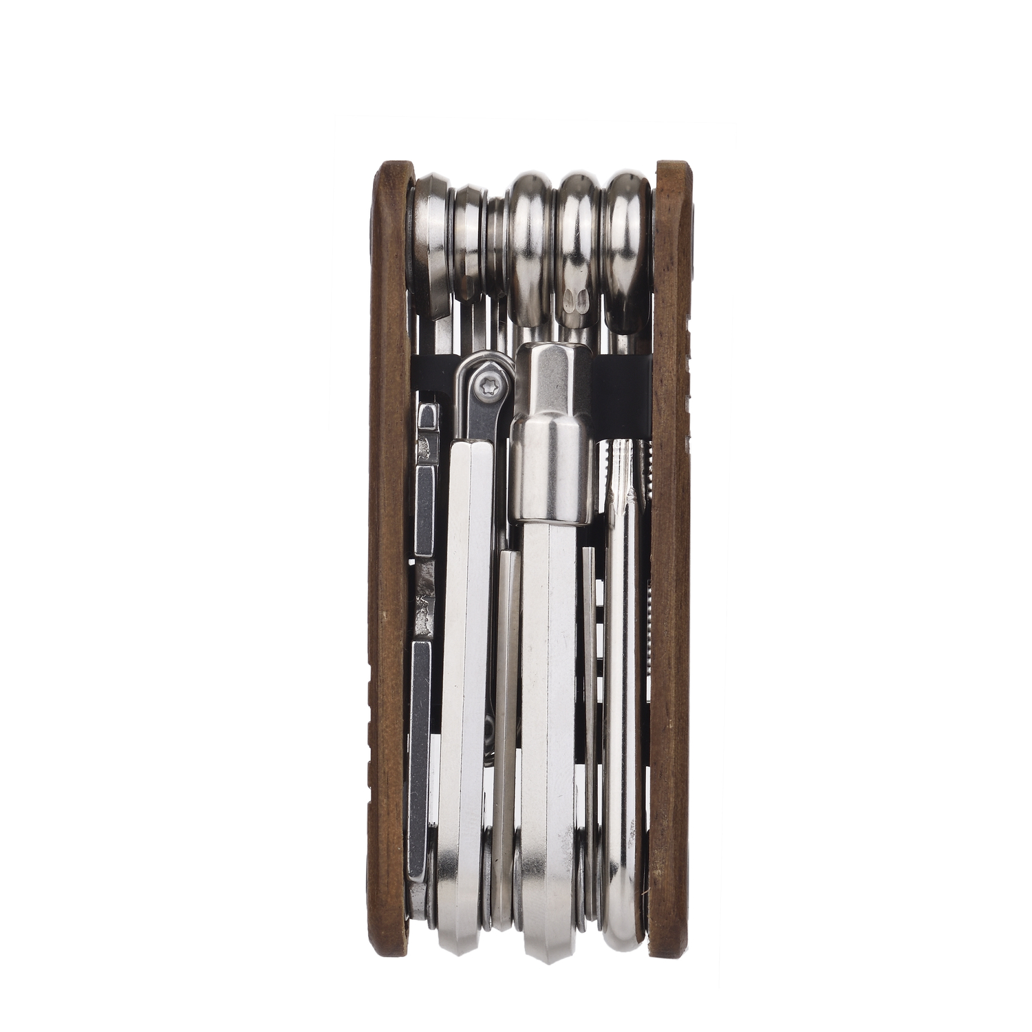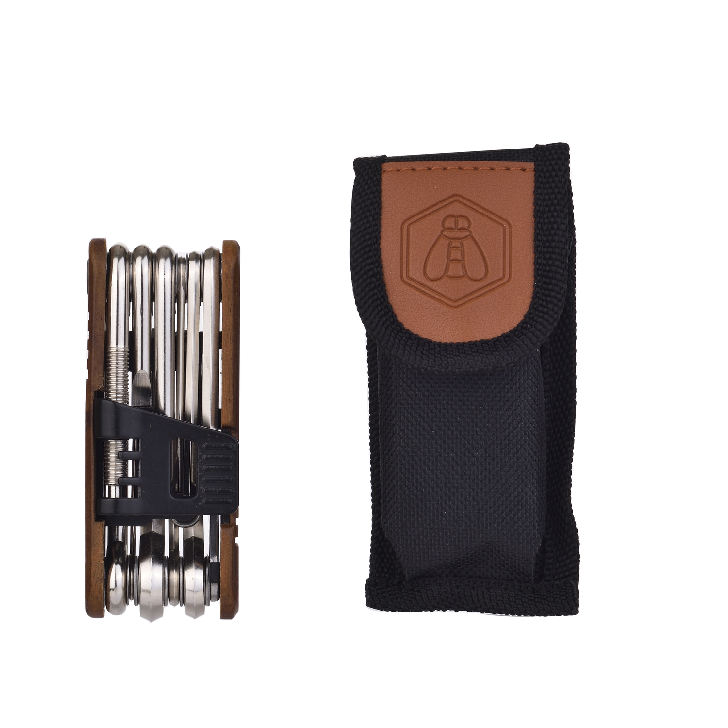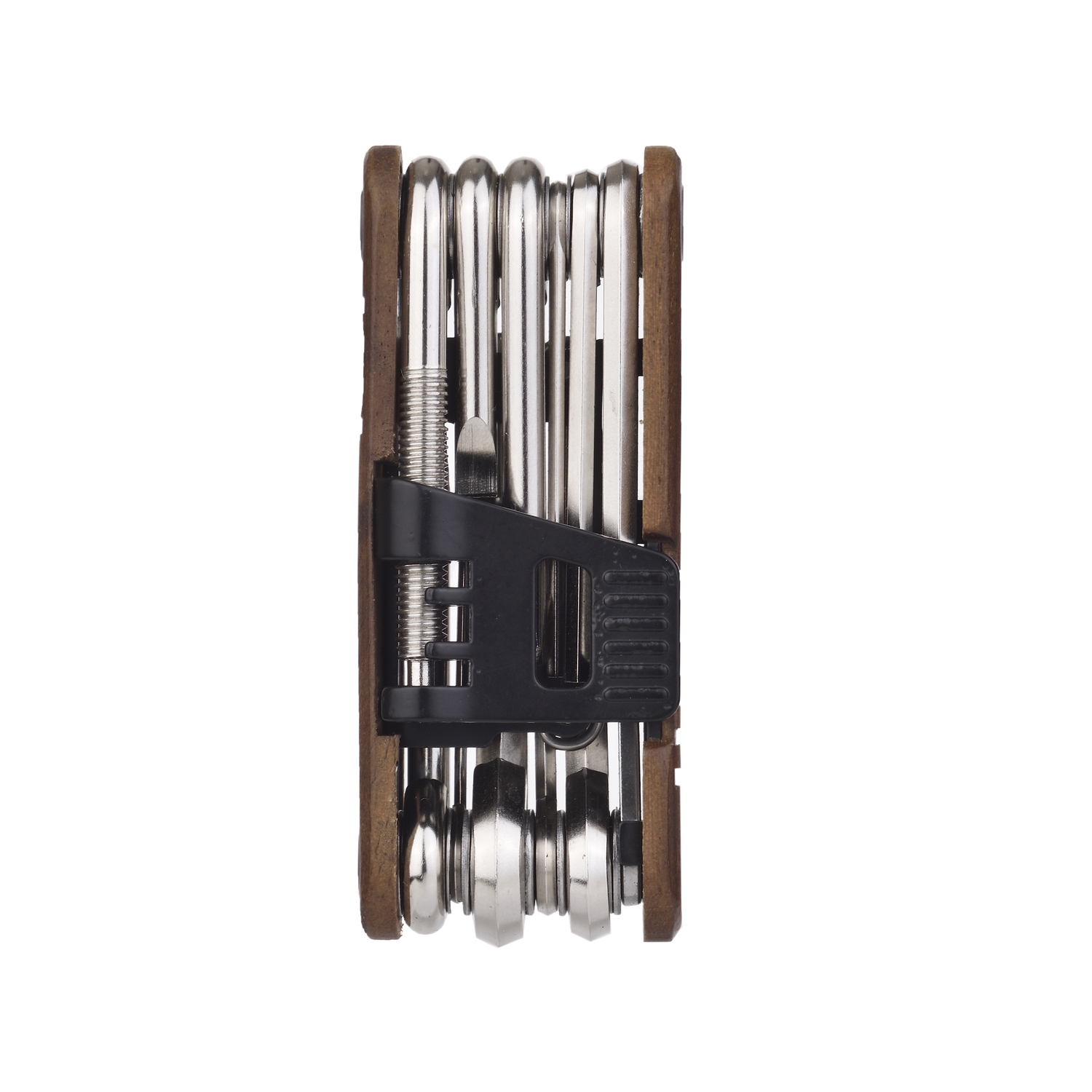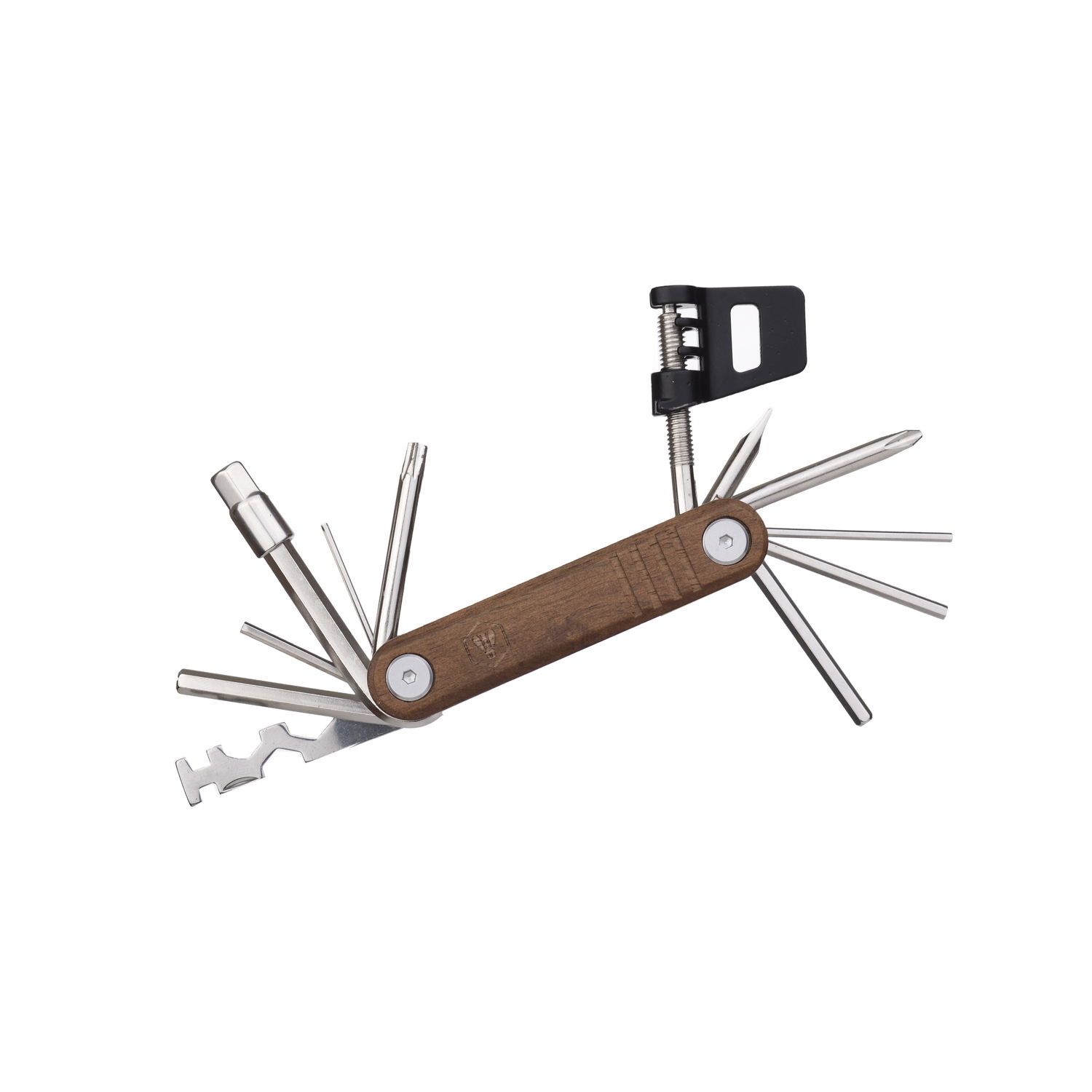 • 13 OUTILS : Il comprend un tournevis plat, un cruciforme, des clés Torx, un dérive-chaîne, un outil pour rayons et des clés hexagonales (1,5 à 10 mm), l’essentiel pour faire face à la plupart des réparations.