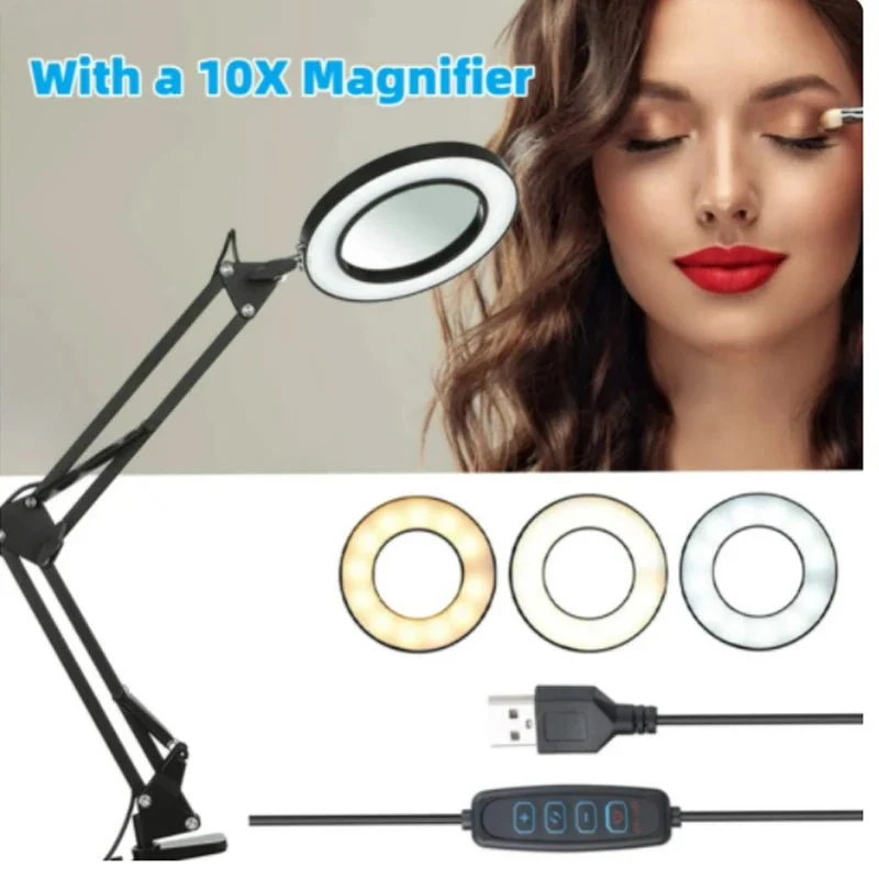 Cette lampe loupe dispose de 72 LED haute luminosité réparties autour de la lentille, offrant 3 modes de température de couleur : lumière chaude, blanc chaud et blanc froid. Chaque mode peut être ajusté en continu sur 10 niveaux de luminosité, vous permettant de trouver la combinaison parfaite pour chaque tâche. Avec un total de 30 modes d’éclairage, cette lampe s’adapte à tous vos besoins.