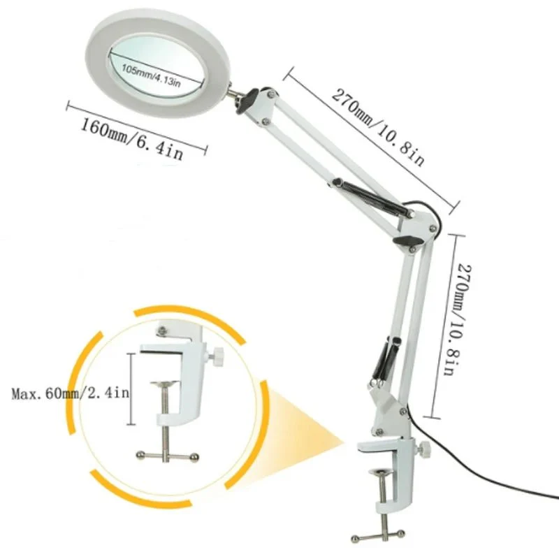 Optimisez vos travaux de précision avec cette loupe de travail équipée d’un éclairage LED intégré et d’une alimentation USB. Conçue pour offrir un éclairage optimal et un grossissement clair, cette lampe est idéale pour les travaux minutieux tels que la couture, la lecture, les réparations, le soudage et bien plus encore. Grâce à sa lentille en verre véritable de 10 dioptries, vous bénéficiez d’une vision nette et sans distorsion.