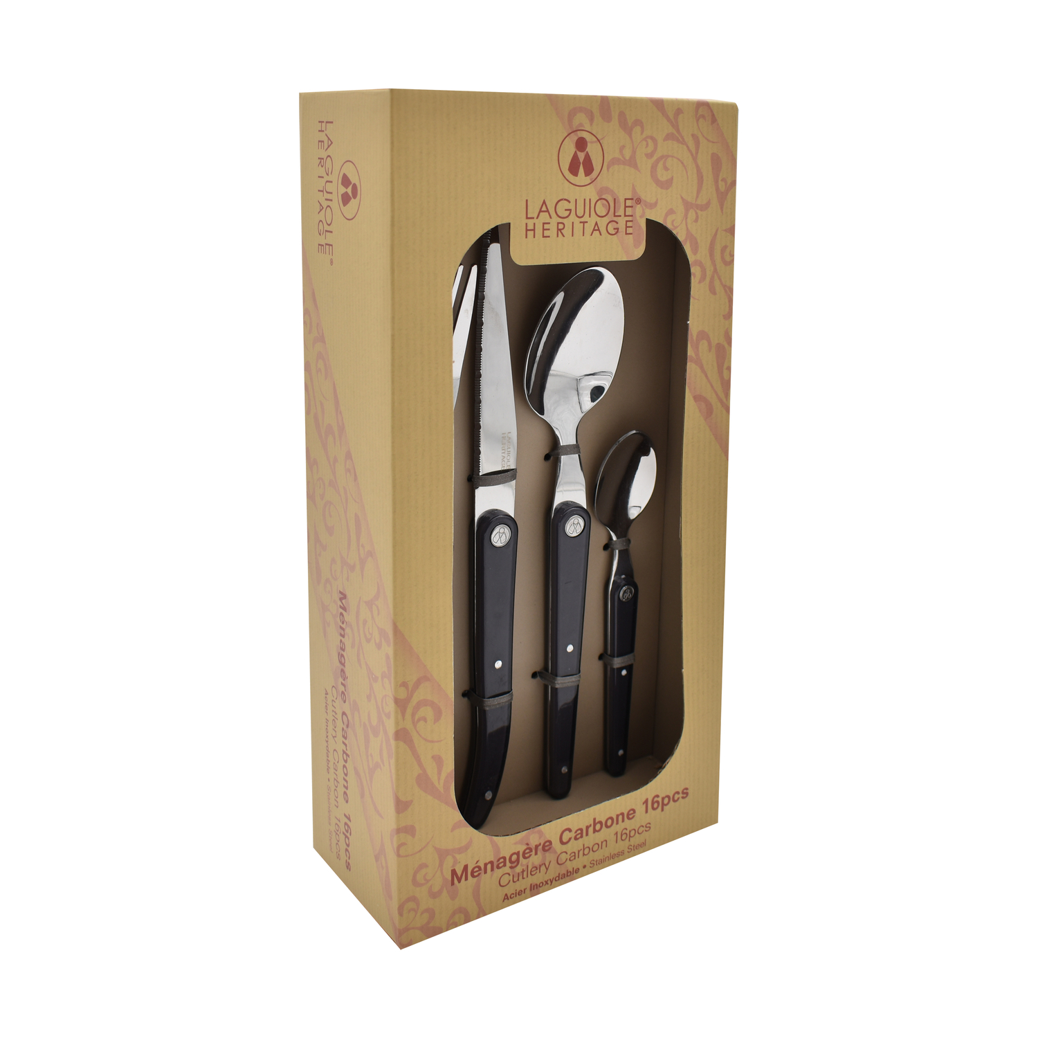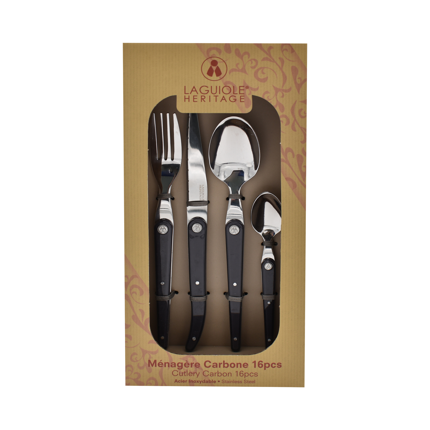CARBONE ELEGANT :Chaque pièce arbore un design moderne avec une finition carbone, apportant un style sophistiqué à votre table.