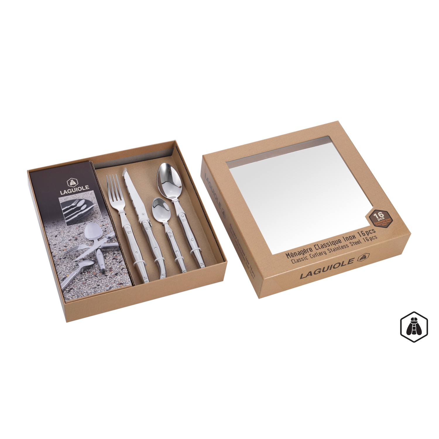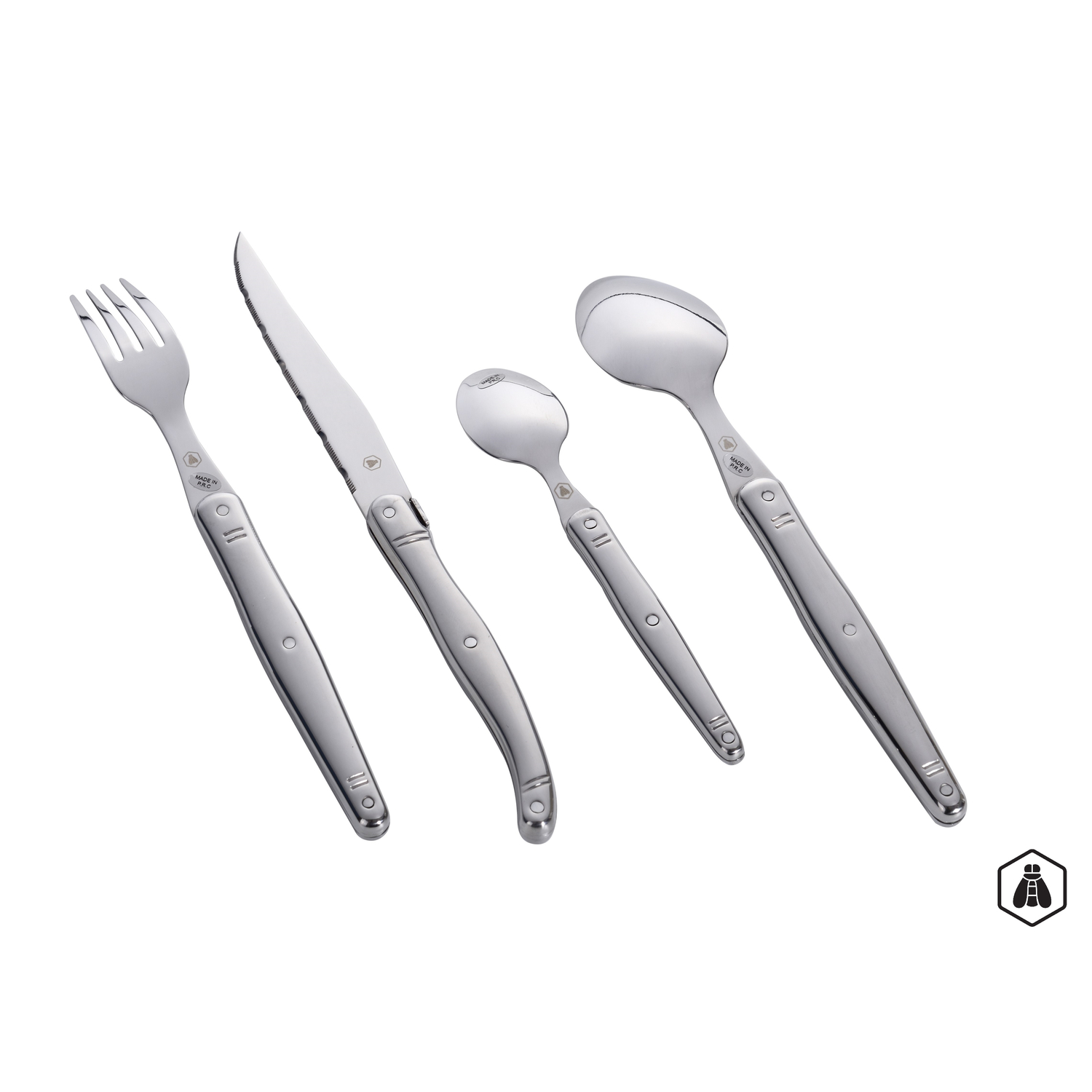 - SERVICE ESSENTIEL : Cette ménagère comprend 4 couteaux, 4 fourchettes, 4 grandes cuillères et 4 petites cuillères, parfait pour équiper une table de 4 personnes.