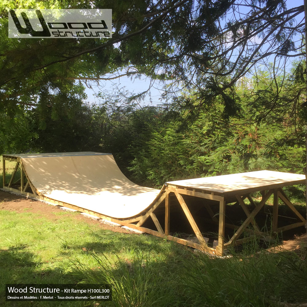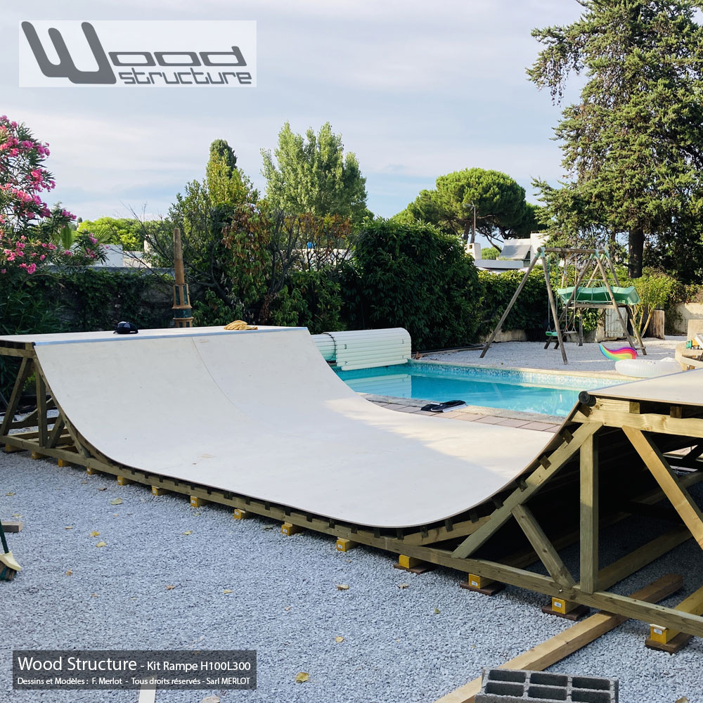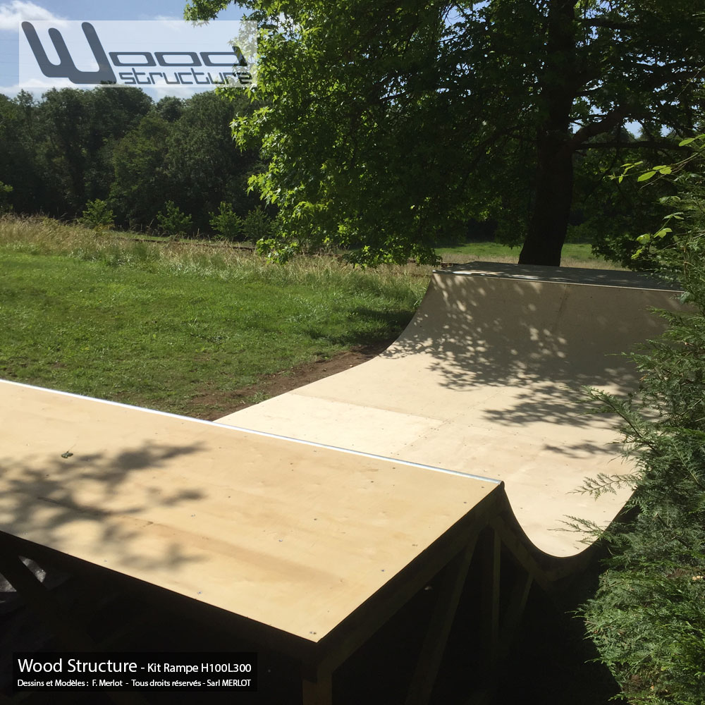 Mini Rampe Skate H100L300 – Livrée en kit, assemblage rapide grâce au pack Wood Ramp comprenant :