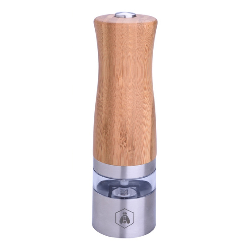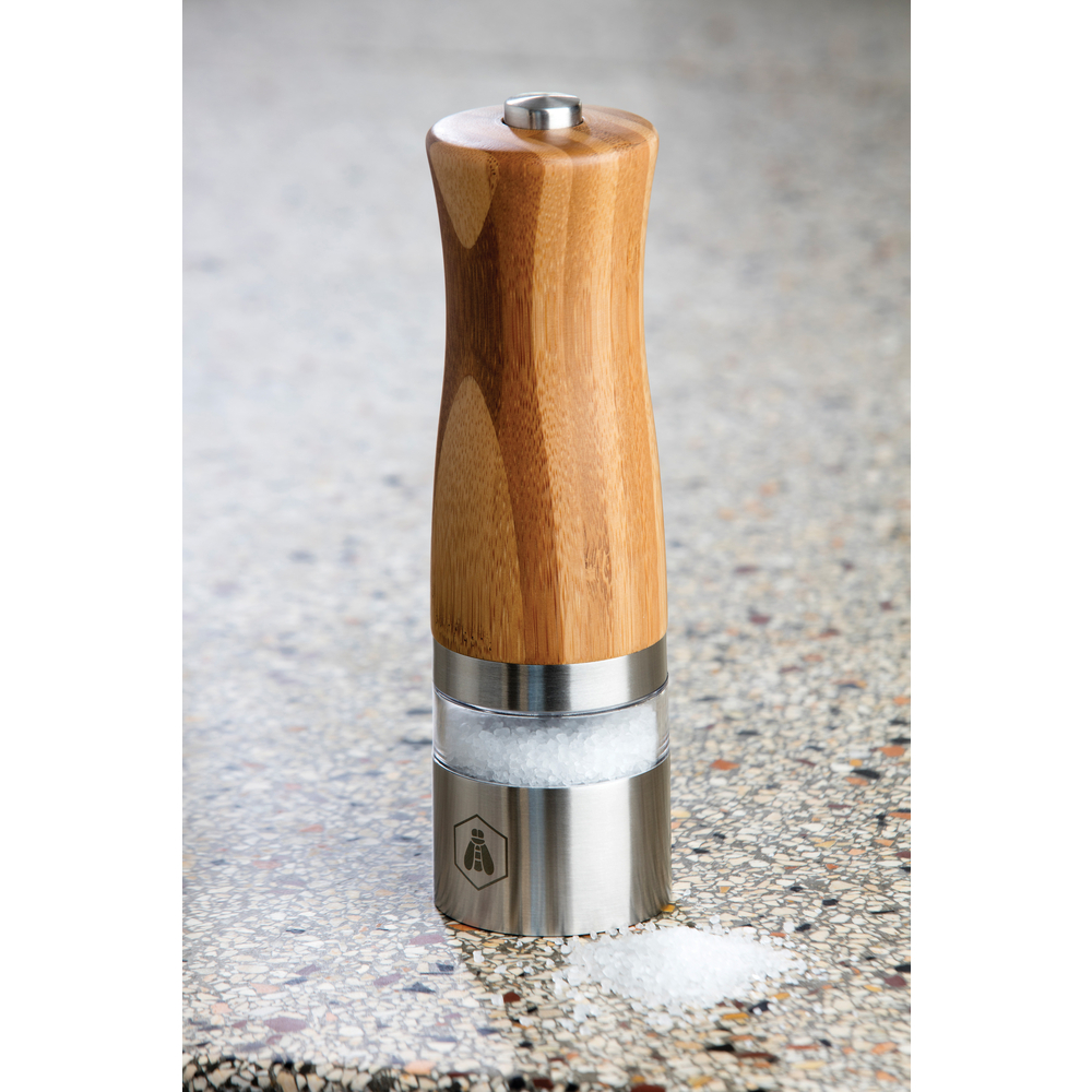 Ce moulin de forme ergonomique est fabriqué en acier inoxydable et en bois de bambou pour une longue durée de vie.