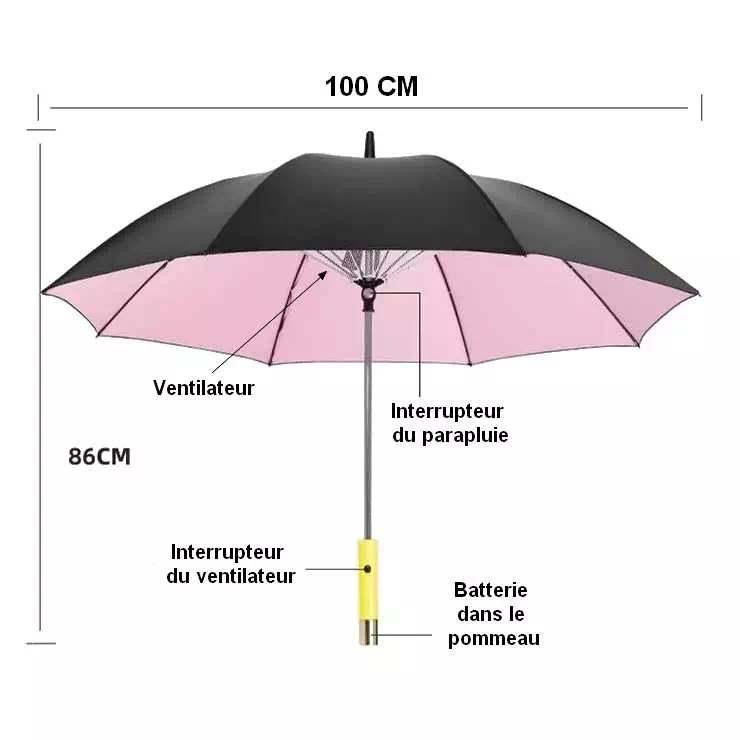 Embrassez la pluie avec style grâce à notre parapluie anti retournement coupe vent. Alliant fonctionnalité et élégance avec nos quatre couleurs captivantes. Son design robuste et ses matériaux de qualité vous assurent une protection optimale même par temps difficile. Finies les inquiétudes face à la météo imprévisible. Il dispose d’un ventilateur intégré avec sa batterie dans le pommeau, c’est donc aussi en plus un vrai parapluie ventilateur.