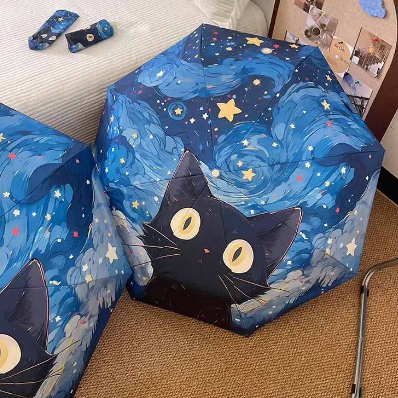 Invincible face aux intempéries, notre parapluie bleu foncé avec un motif de chat est le compagnon idéal de vos journées pluvieuses. Alliant robustesse et style, c’est plus qu’un parapluie automatique, c’est un véritable accessoire de mode. Avec lui, chaque goutte d’eau raconterait une histoire ! C’est un beau parapluie chat de nuit…