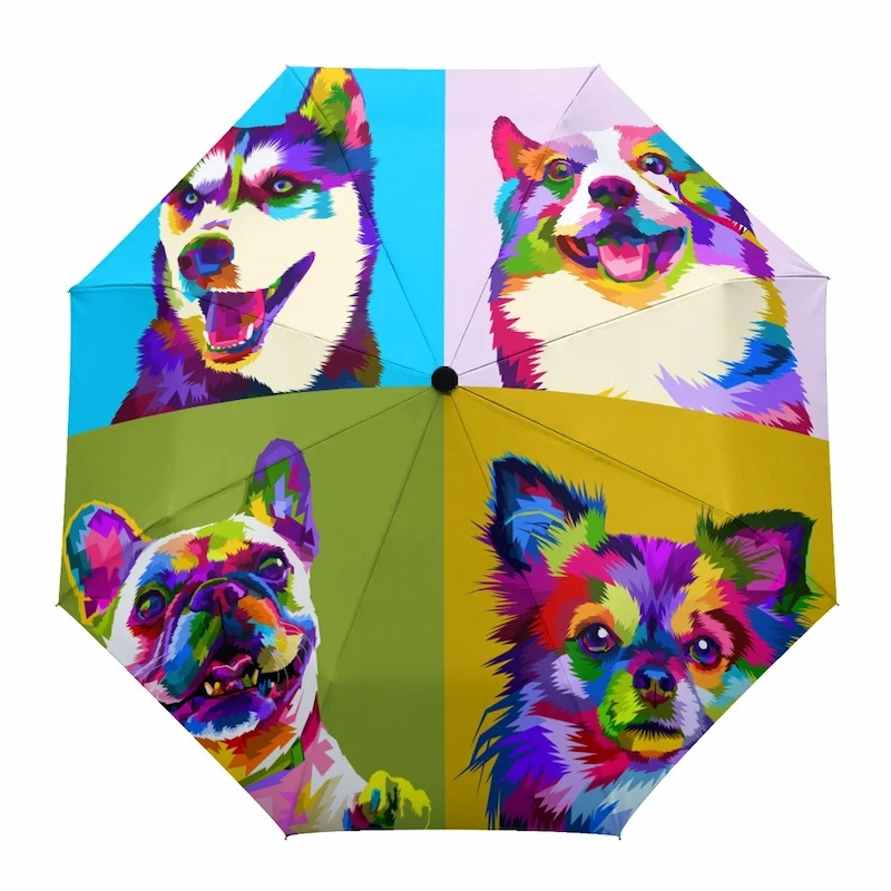 Ne laissez jamais la pluie vous empêcher d’égayer votre journée ! Optez pour notre parapluie enfant multicolore montre une tête de Chihuahua. Ce parapluie enfant automatique un modèle automatique au design unique qui fait sourire même lors les jours de pluie les plus sombres.