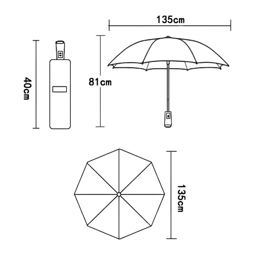 D’un diamètre impressionnant de 135 cm, il vous enveloppe d’une protection totale, vous gardant au sec même dans les averses les plus intenses. Et malgré sa taille, ce parapluie reste incroyablement maniable.