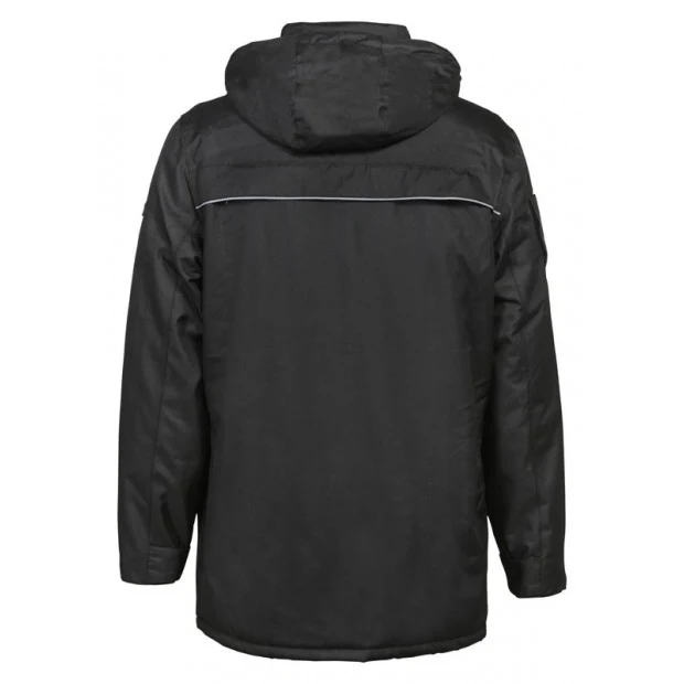 6 poches extérieures, 3 poches intérieures dont 1 poche téléphone, flap Velcro amovible « SÉCURITÉ » poitrine et dos sortable et rentable dans la poche. Ceinture élastiquée à la taille, poignets réglables par pression, capuche amovible, porte-écusson sur épaule droite. Ouverture zippée bas du dos pour broderie.