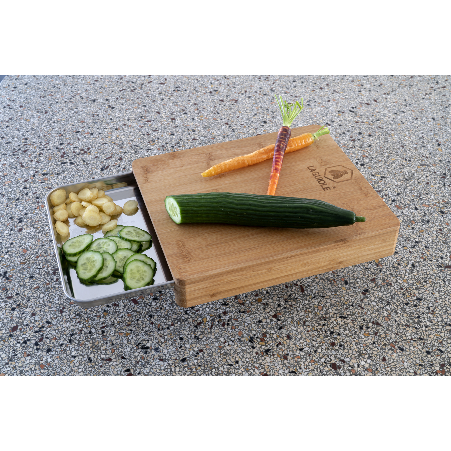 La planche est fabriquée en bois de bambou, qui est idéal pour les planches à découper car il ne se raye pas et ne s’use pas.