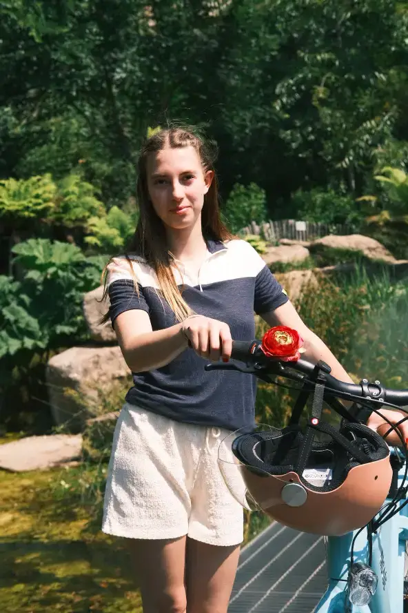Le polo pour femme Lina est en lin, une matière durable, intemporel et éthique. Il est conçu pour pratiquer le vélo au quotidien.