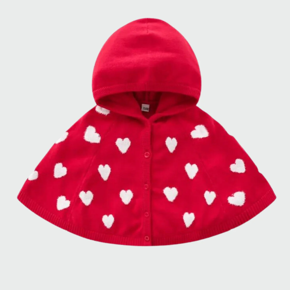 Poncho rouge pour fille à cœurs blancs