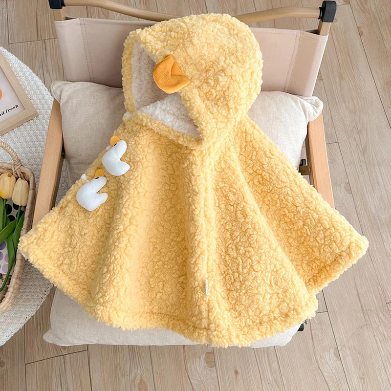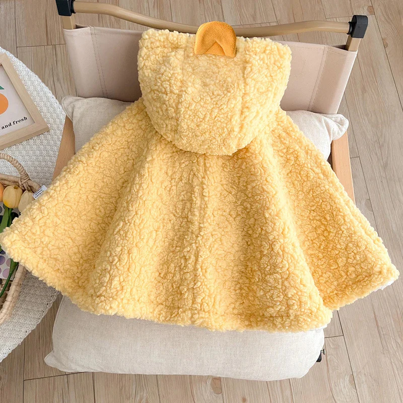 Poncho bébé en sherpa jaune avec capuche et détails canard