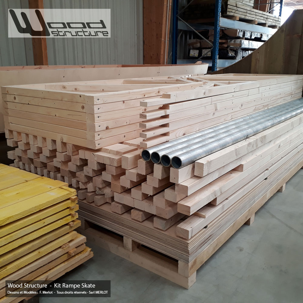 Rampe Skate H120L600 – Livrée en kit, assemblage rapide grâce au pack Wood Ramp comprenant :