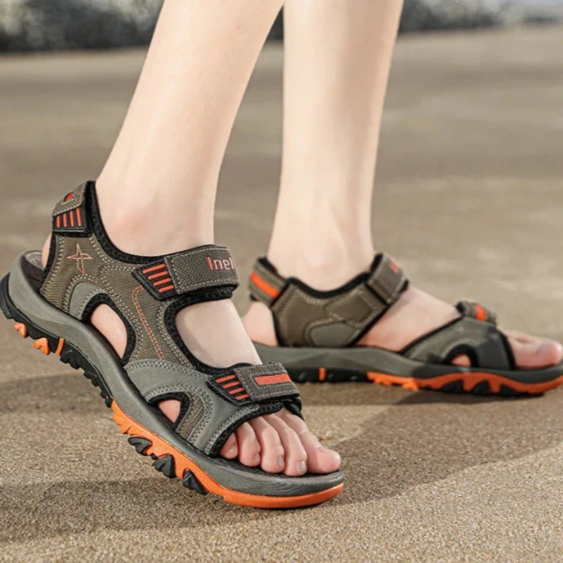 Sandales de randonnée et plage, semelle épaisse crantée, brides réglables, aération rapide, look dynamique pour activités extérieures variées.