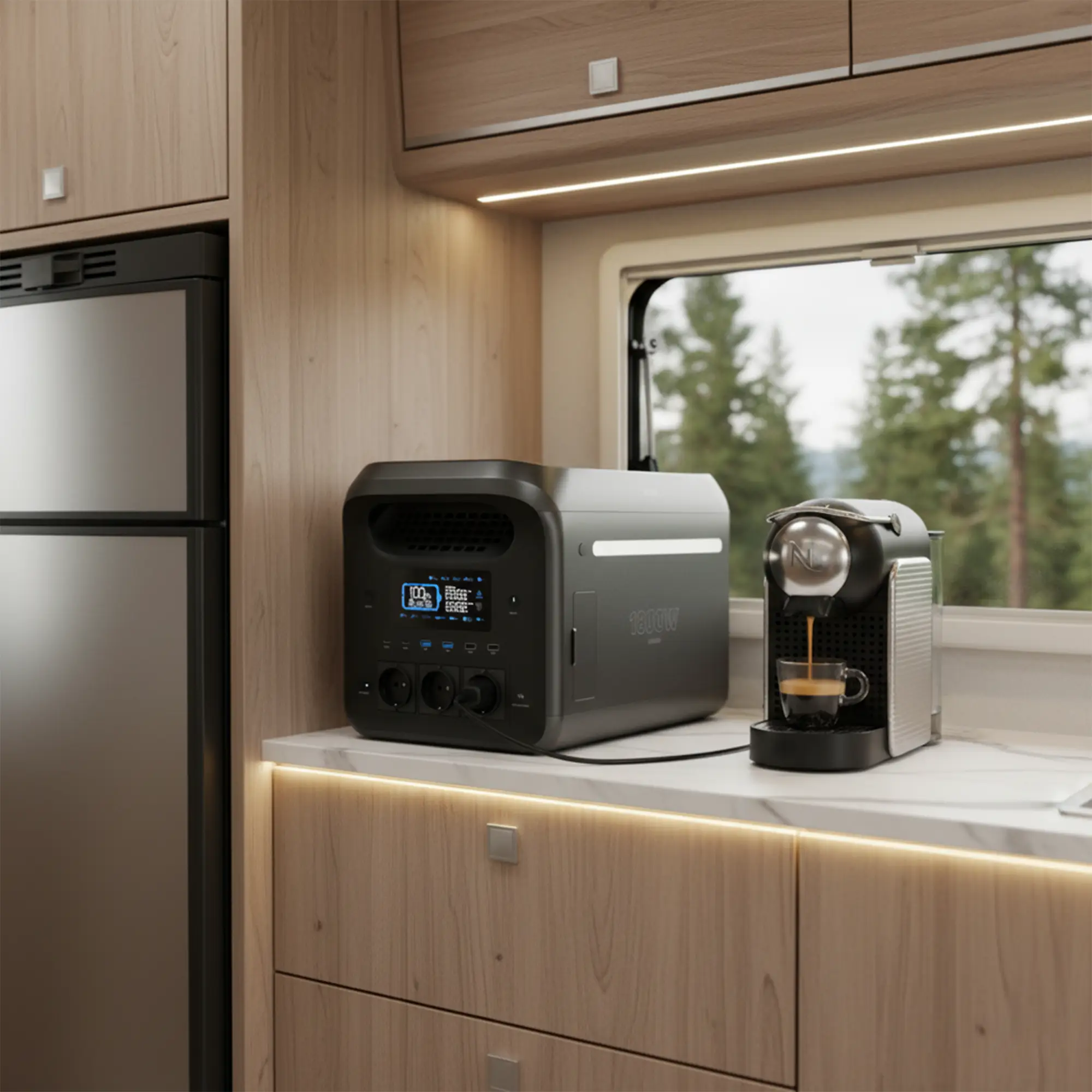 This Smart Power Station delivers up to 1800W of output power, with surge protection up to 3000W. Plug in your fridge, microwave, TV or kettle and enjoy reliable energy outdoors or off-grid.