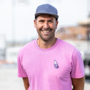 T-shirt bio de haute qualité avec l’élégante broderie Van sur la poitrine.