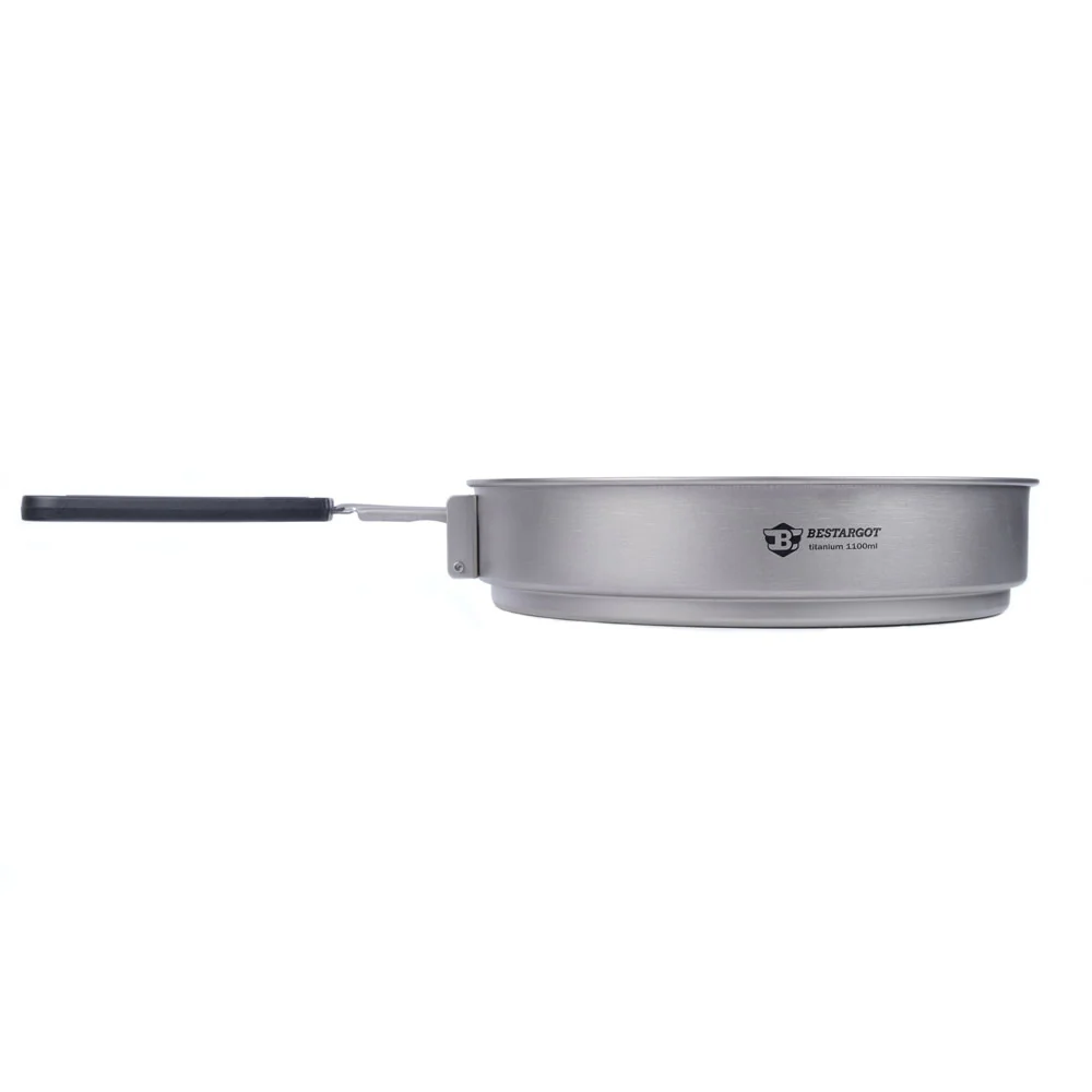 Bestarogt TItanium Frying pan is made of TA1 pure titanium using a advanced manufacturing process. Practical frying pans to use over open fire or other heat sources. The handles are foldable or fixed.