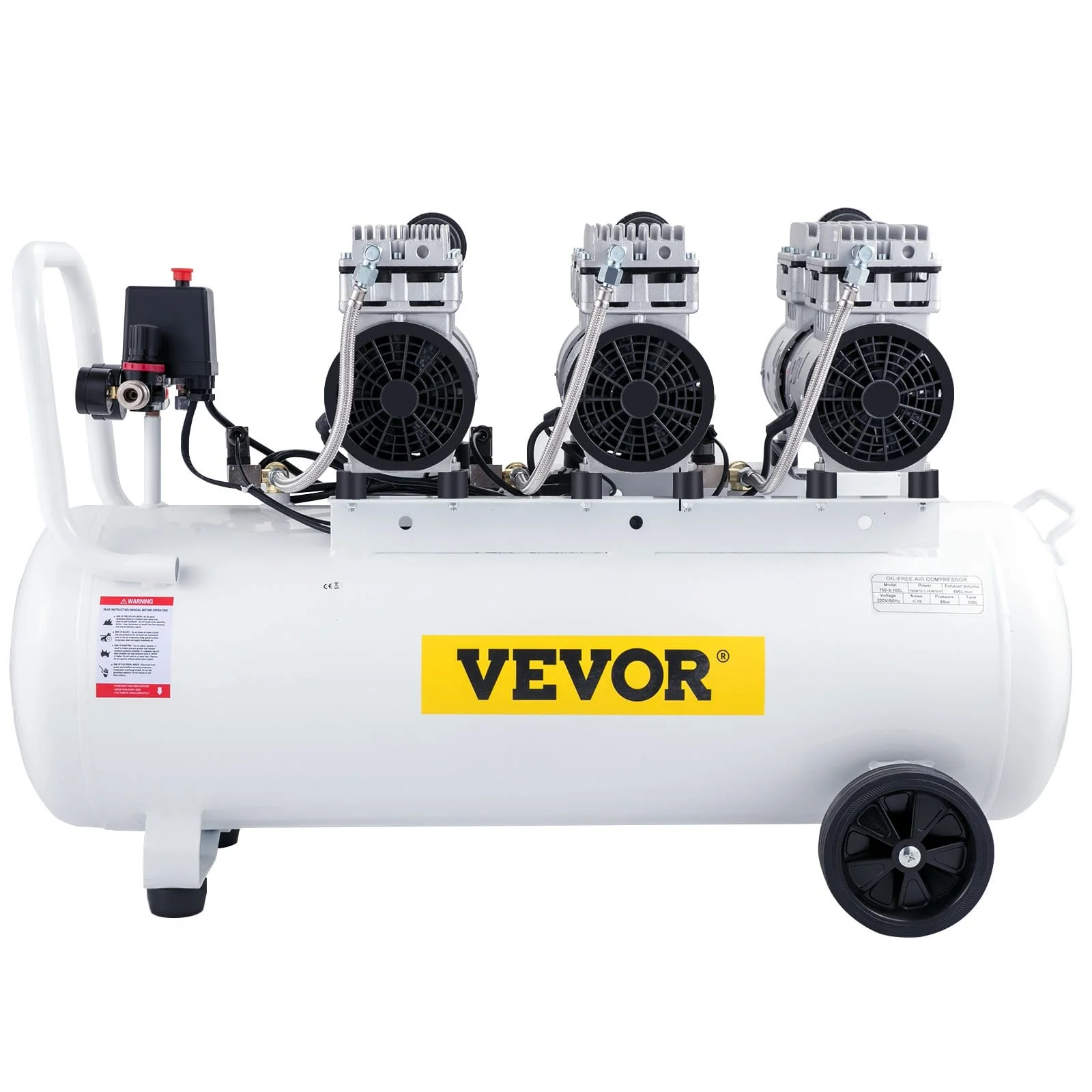 - Compresseur d’Air de 100 L : Le compresseur d’air est équipé d’une pompe sans huile pour un entretien minimal et d’un réservoir de 100 litres pour un fonctionnement continu et à haut rendement.