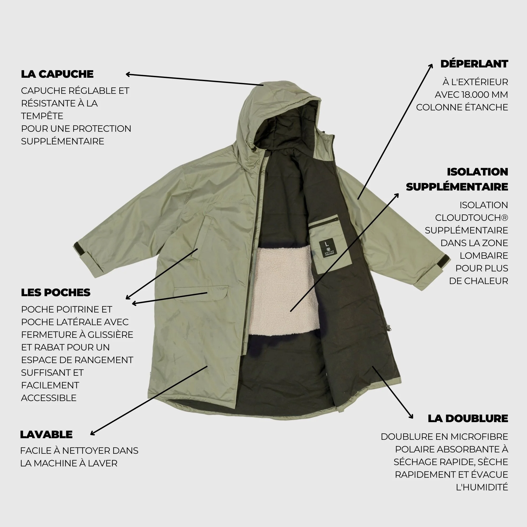 Une évolution des vêtements de change de plein air, repensés pour les nageurs en eau froide, les surfeurs, les promeneurs, les adeptes de la vie en van et les aventuriers en plein air qui recherchent chaleur, protection et confort en toutes circonstances. Léger, ultra-absorbant et à séchage rapide, ce produit amélioré assure une transition fluide entre l’eau et la terre tout en te protégeant des éléments. Avec une isolation renforcée, un rangement plus astucieux et un design plus élégant, le Drycoat 3.0 est conçu pour ceux qui refusent de se laisser freiner par les intempéries.