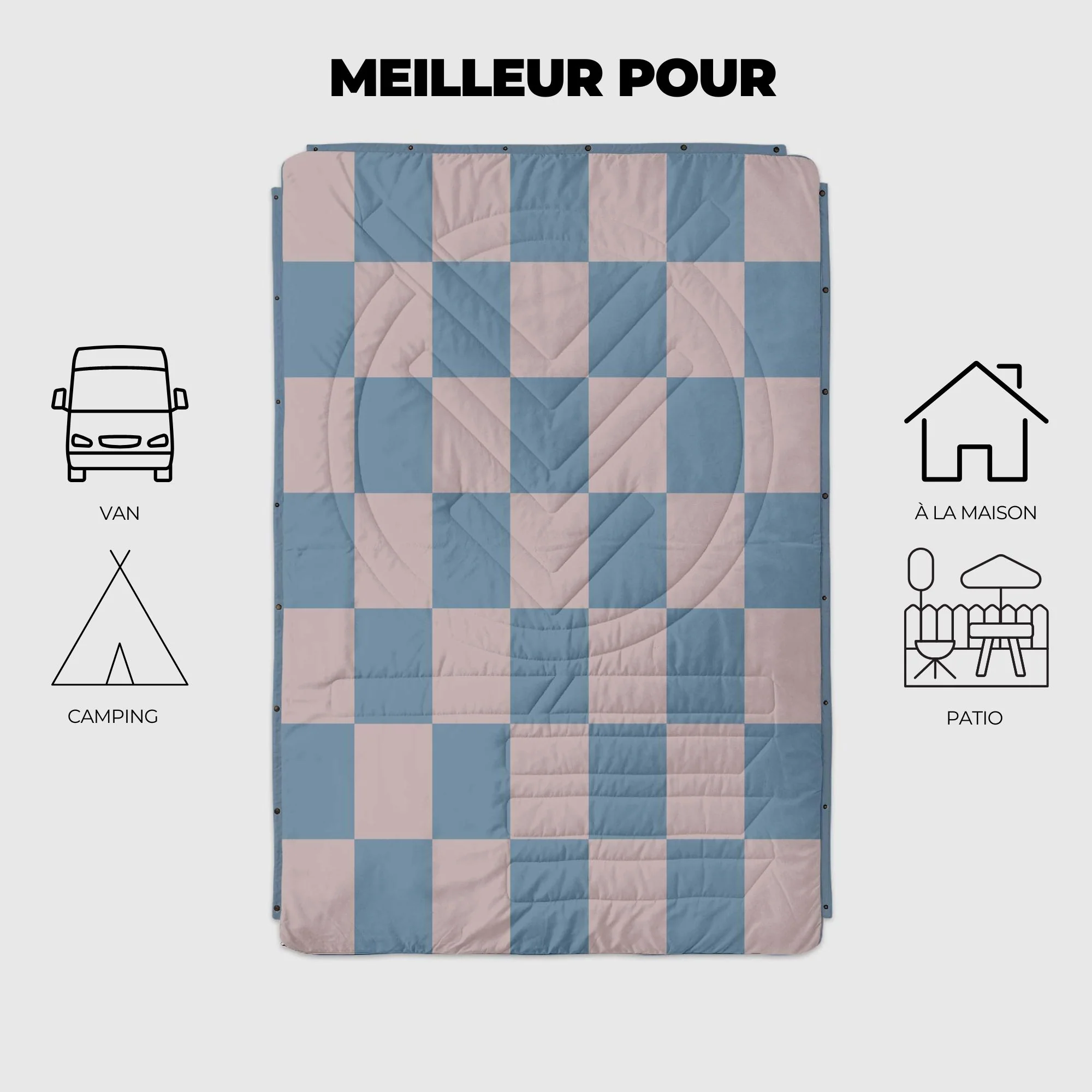 Une couverture chaude 4 en 1 matelassée et résistante à l’eau à utiliser à l’intérieur et à l’extérieur, pour les trips en van, le camping, les voyages et même à la maison. Ripstop recyclé d’un côté et polaire CloudTouch® brossée de l’autre. Durable. Résistante aux taches. Lavable en machine.