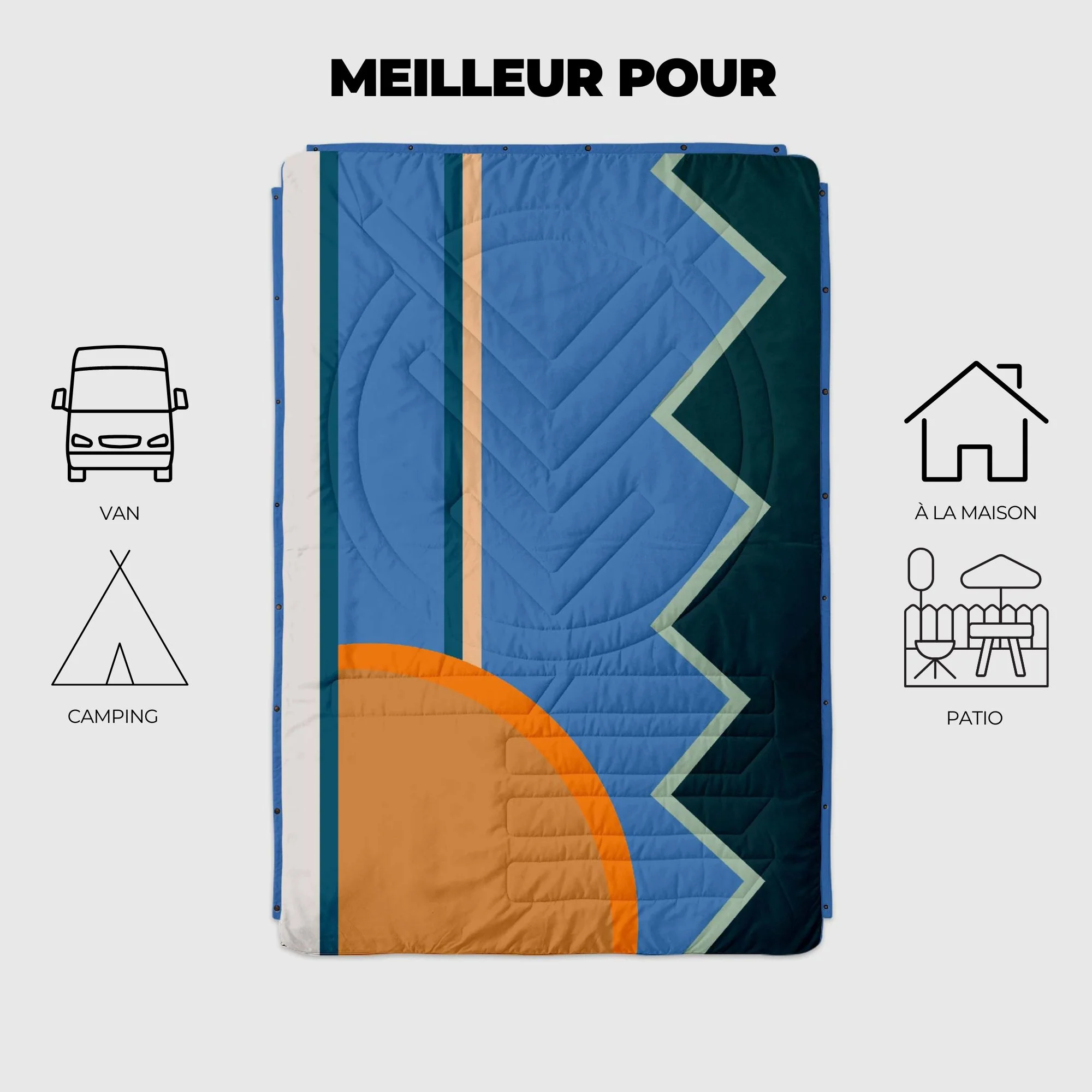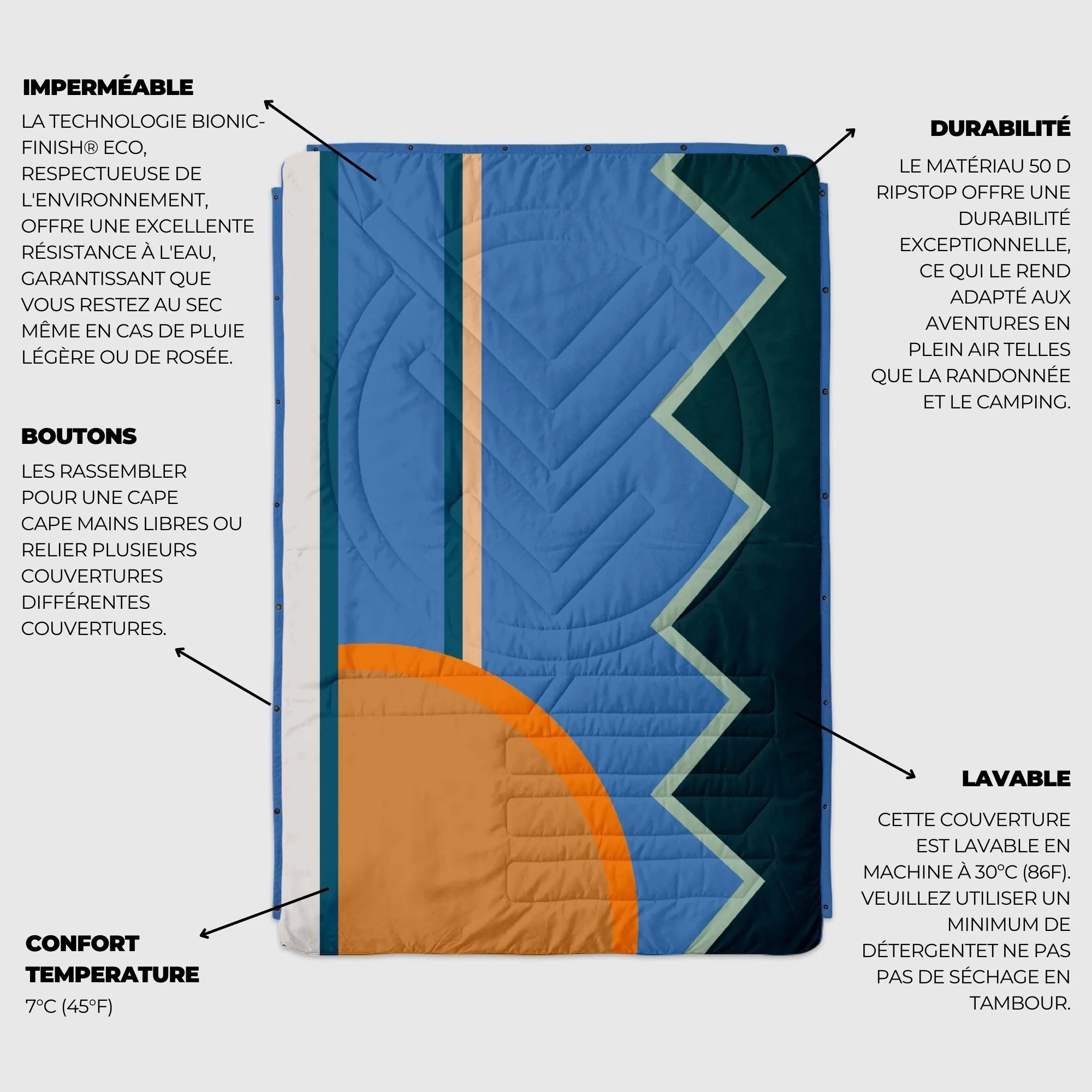 Une couverture chaude 4 en 1 matelassée et résistante à l’eau à utiliser à l’intérieur et à l’extérieur, pour les trips en van, le camping, les voyages et même à la maison. Ripstop recyclé d’un côté et polaire CloudTouch® brossée de l’autre. Durable. Résistante aux taches. Lavable en machine.