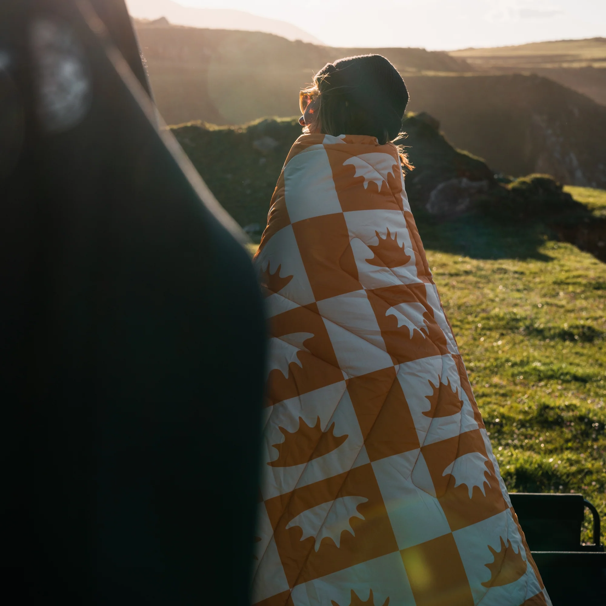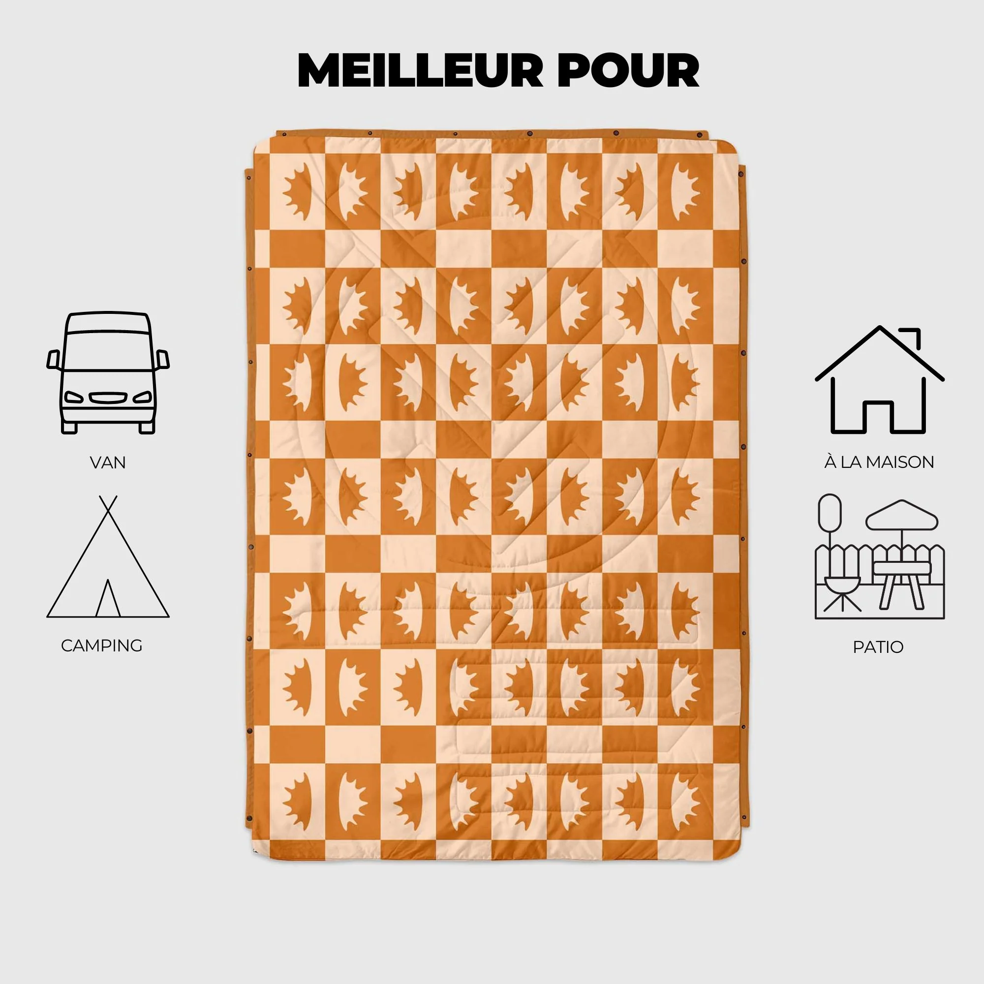 Une couverture chaude 4 en 1 matelassée et résistante à l’eau à utiliser à l’intérieur et à l’extérieur, pour les trips en van, le camping, les voyages et même à la maison. Ripstop recyclé d’un côté et polaire CloudTouch® brossée de l’autre. Durable. Résistante aux taches. Lavable en machine.