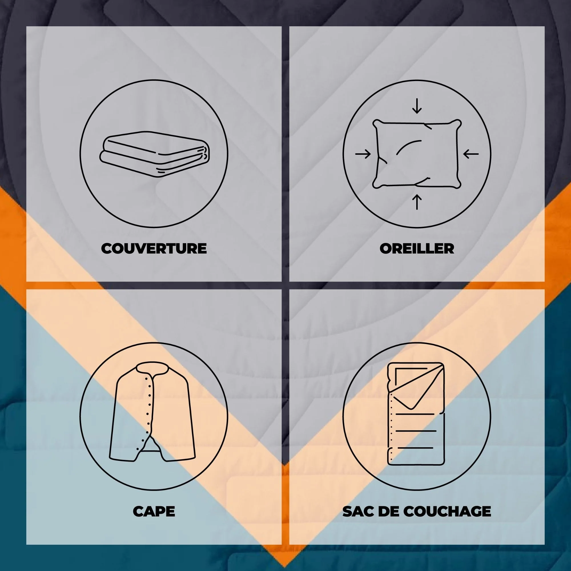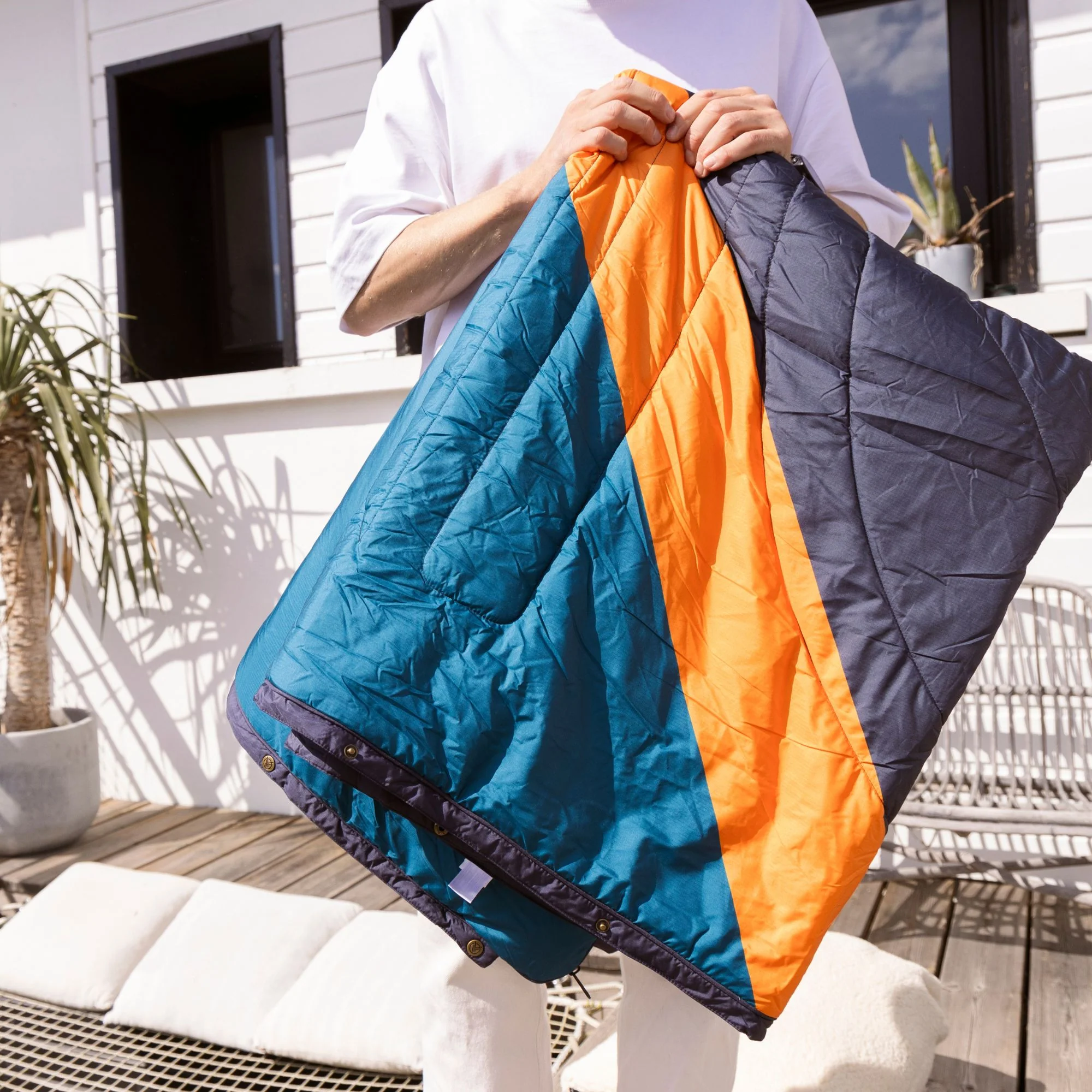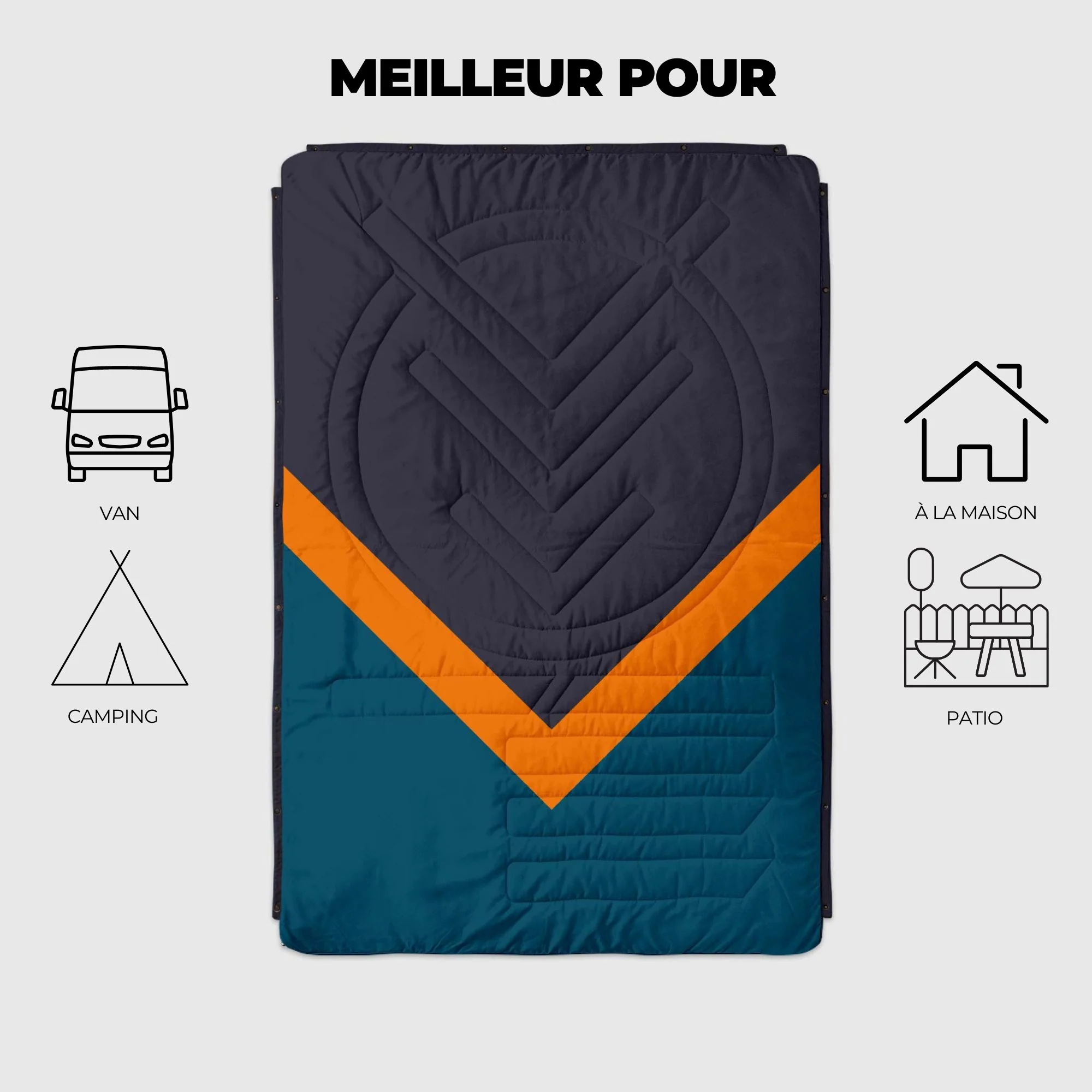 Une couverture chaude 4 en 1 matelassée et résistante à l’eau à utiliser à l’intérieur et à l’extérieur, pour les trips en van, le camping, les voyages et même à la maison. Ripstop recyclé d’un côté et polaire CloudTouch® brossée de l’autre. Durable. Résistante aux taches. Lavable en machine.