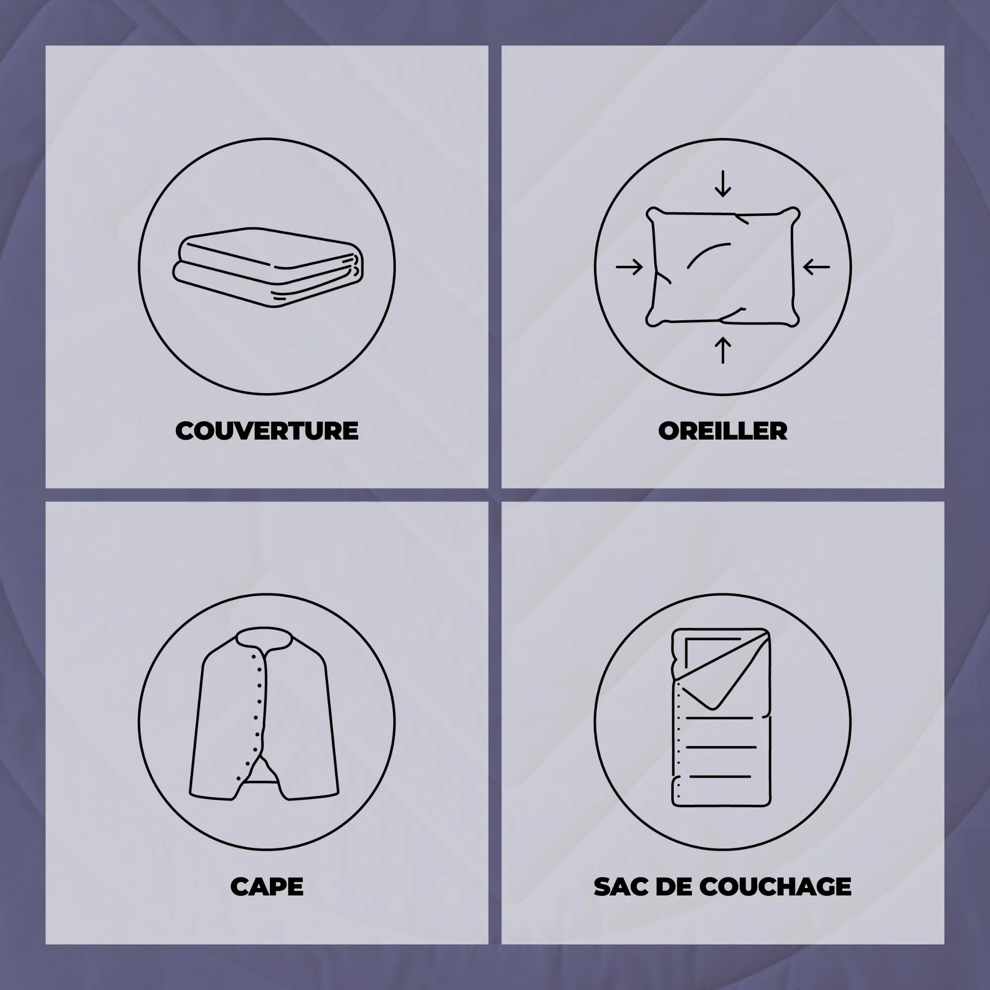 La couverture PillowBlanket™ la plus chaude. Fournit une chaleur supplémentaire pendant les nuits froides. Température la plus basse recommandée : 8°C/46F* *Les températures ont été largement testées ; cependant, les résultats restent subjectifs.