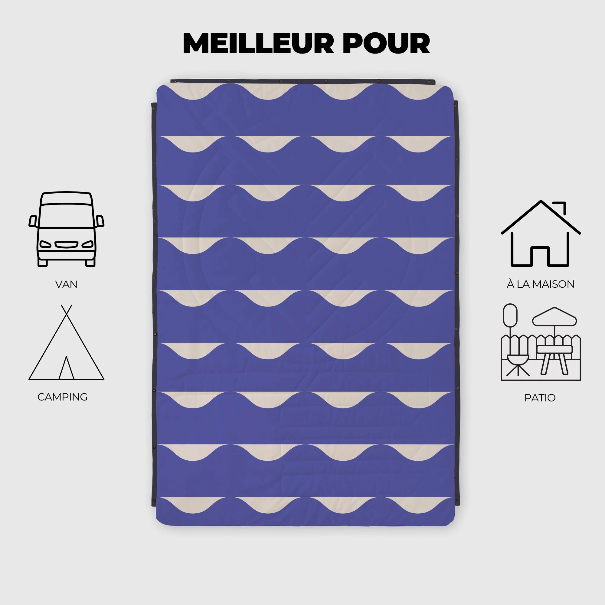 Les couvertures CloudTouch®, comme toutes nos couvertures chaudes, sont parfaites pour se réchauffer à l’intérieur de ton van, tente ou même dans le confort de ton canapé à la maison.
