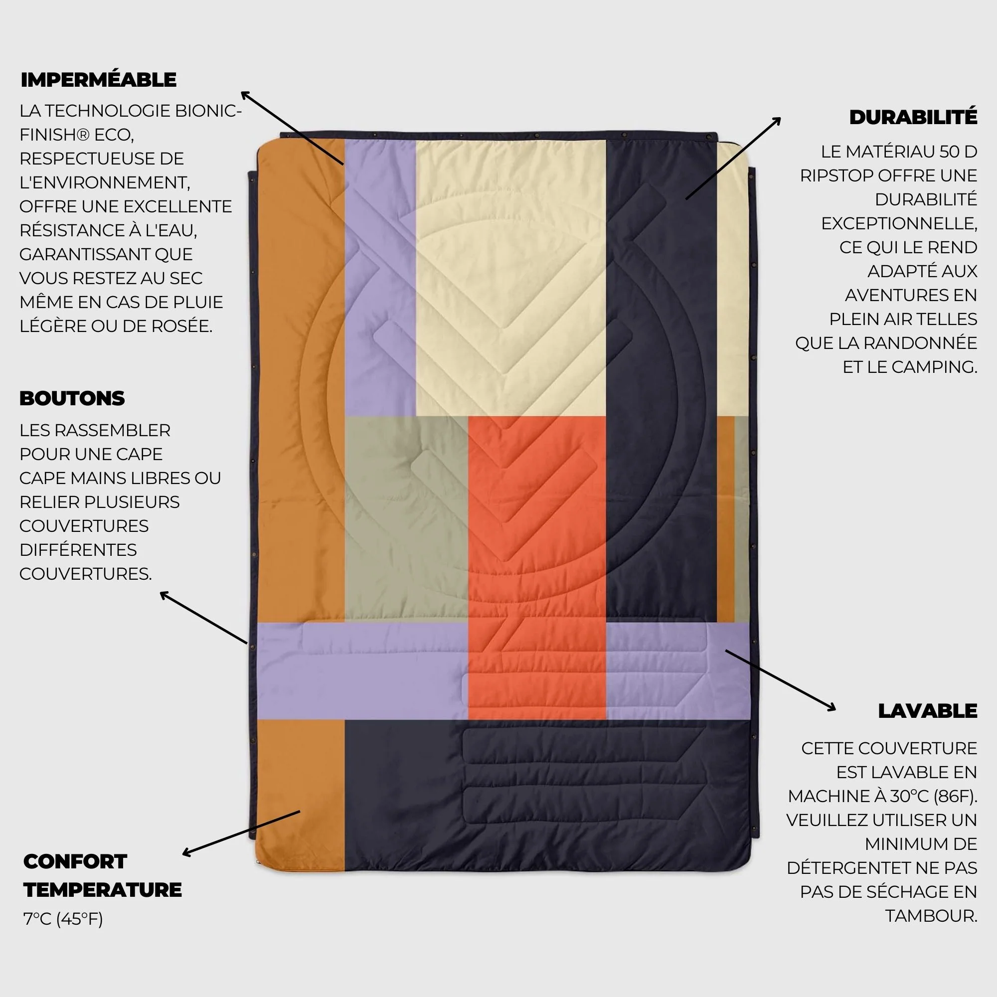 Une couverture chaude 4 en 1 matelassée et résistante à l’eau à utiliser à l’intérieur et à l’extérieur, pour les trips en van, le camping, les voyages et même à la maison. Ripstop recyclé d’un côté et polaire CloudTouch® brossée de l’autre. Durable. Résistante aux taches. Lavable en machine.