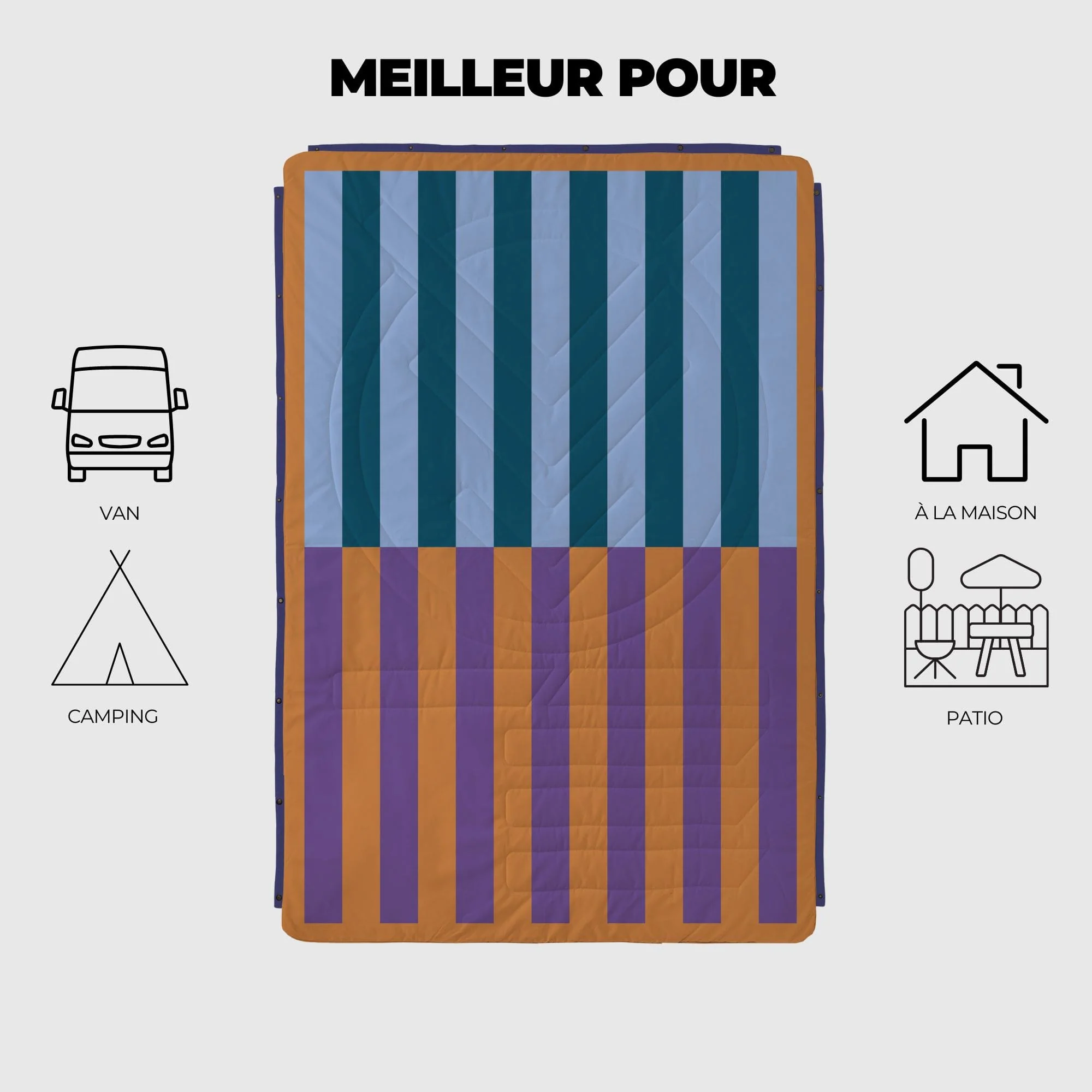 Une couverture chaude 4 en 1 matelassée et résistante à l’eau à utiliser à l’intérieur et à l’extérieur, pour les trips en van, le camping, les voyages et même à la maison. Ripstop recyclé d’un côté et polaire CloudTouch® brossée de l’autre. Durable. Résistante aux taches. Lavable en machine.