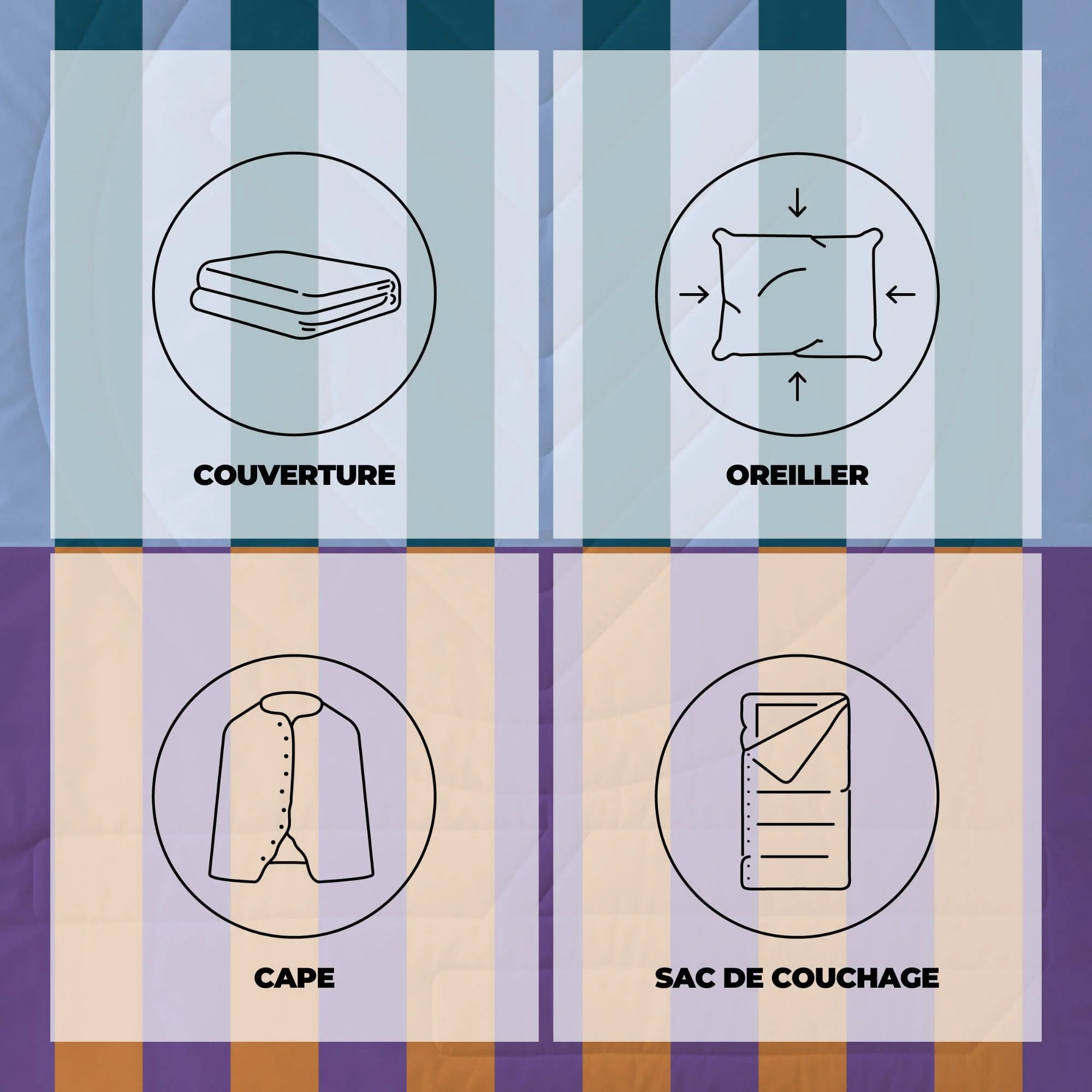 Fabriquée à partir de bouteilles en plastique recyclées, la CloudTouch® Outdoor PillowBlanket™ est la couverture d’extérieur la plus confortable et la plus cosy que tu puisses trouver. La couverture CloudTouch® est faite d’un tissu tricoté brossé, doux et moelleux, fabriqué à partir de polyester 100 % recyclé. Il ressemble à de la vraie laine de mouton mais est beaucoup plus léger, moins volumineux et a des capacités de séchage plus rapides.