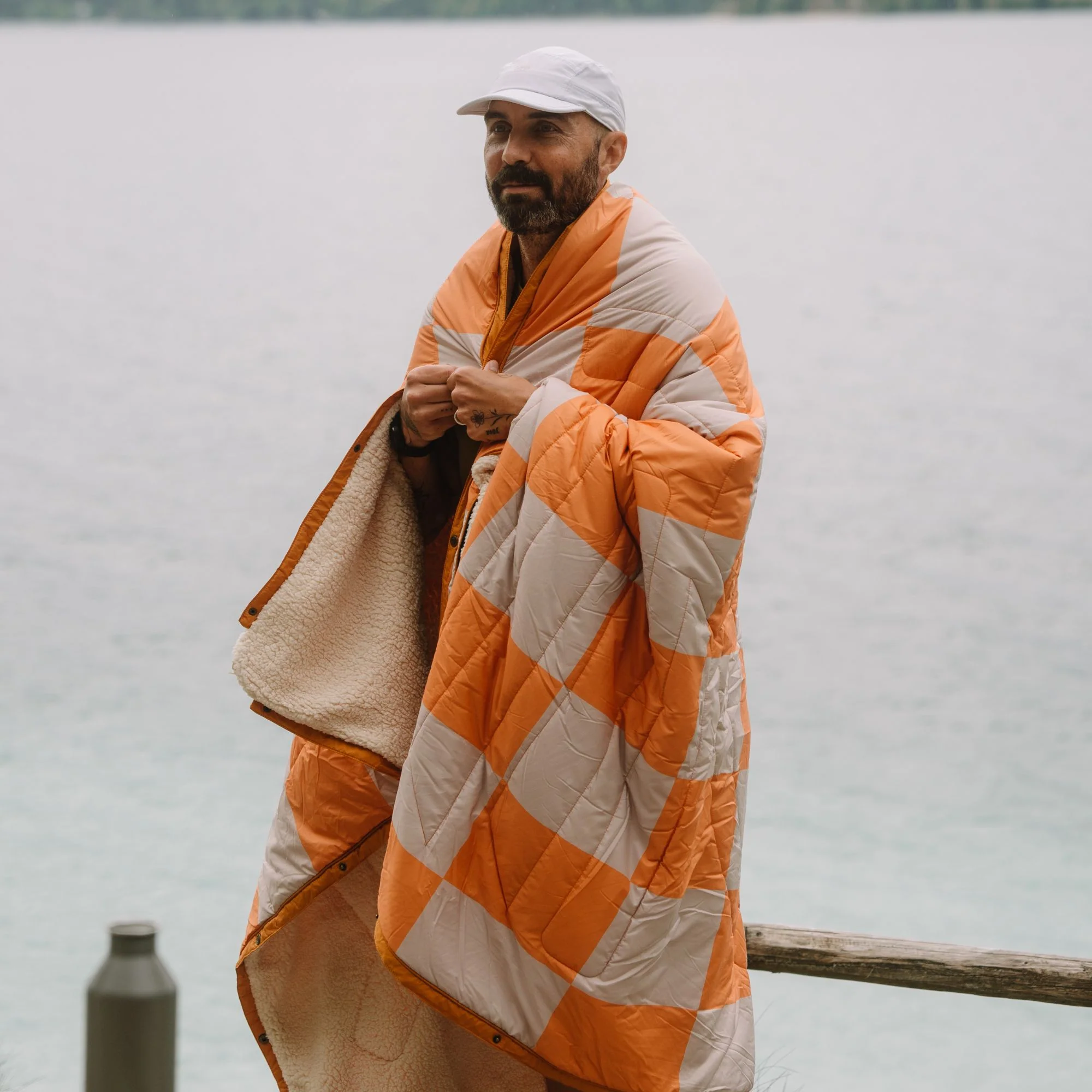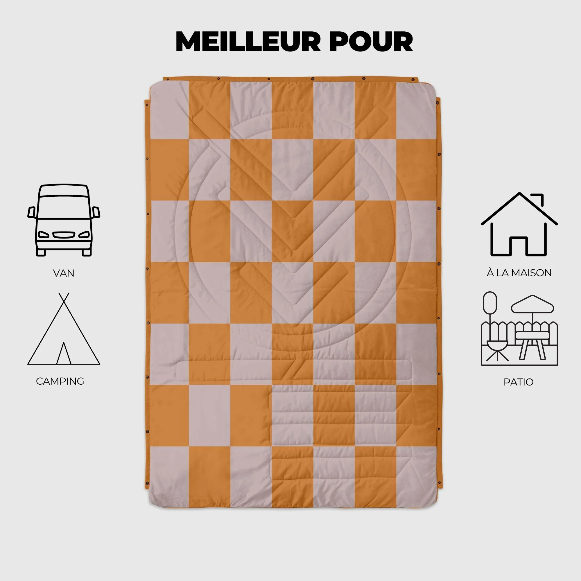 Une couverture chaude 4 en 1 matelassée et résistante à l’eau à utiliser à l’intérieur et à l’extérieur, pour les trips en van, le camping, les voyages et même à la maison. Ripstop recyclé d’un côté et polaire CloudTouch® brossée de l’autre. Durable. Résistante aux taches. Lavable en machine.