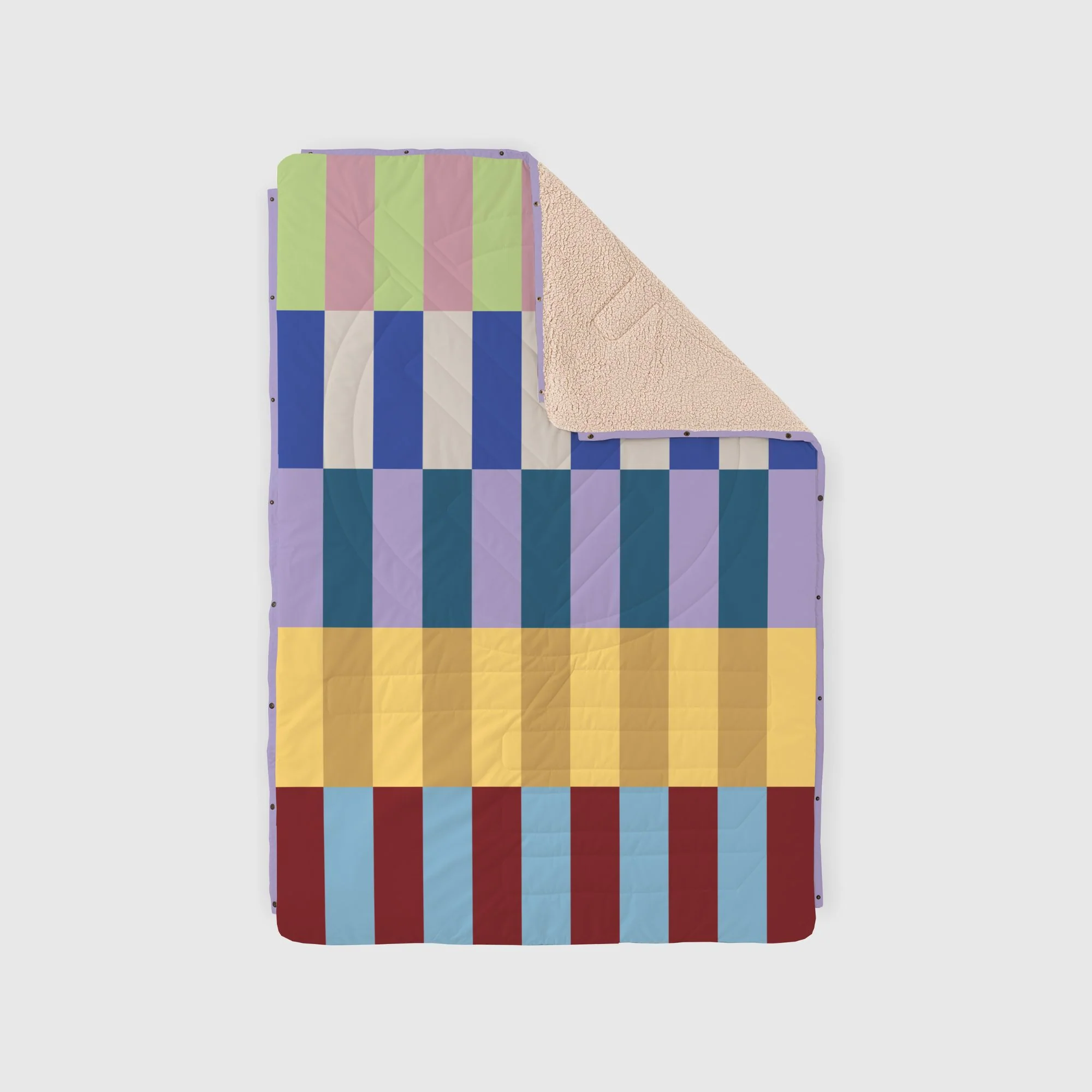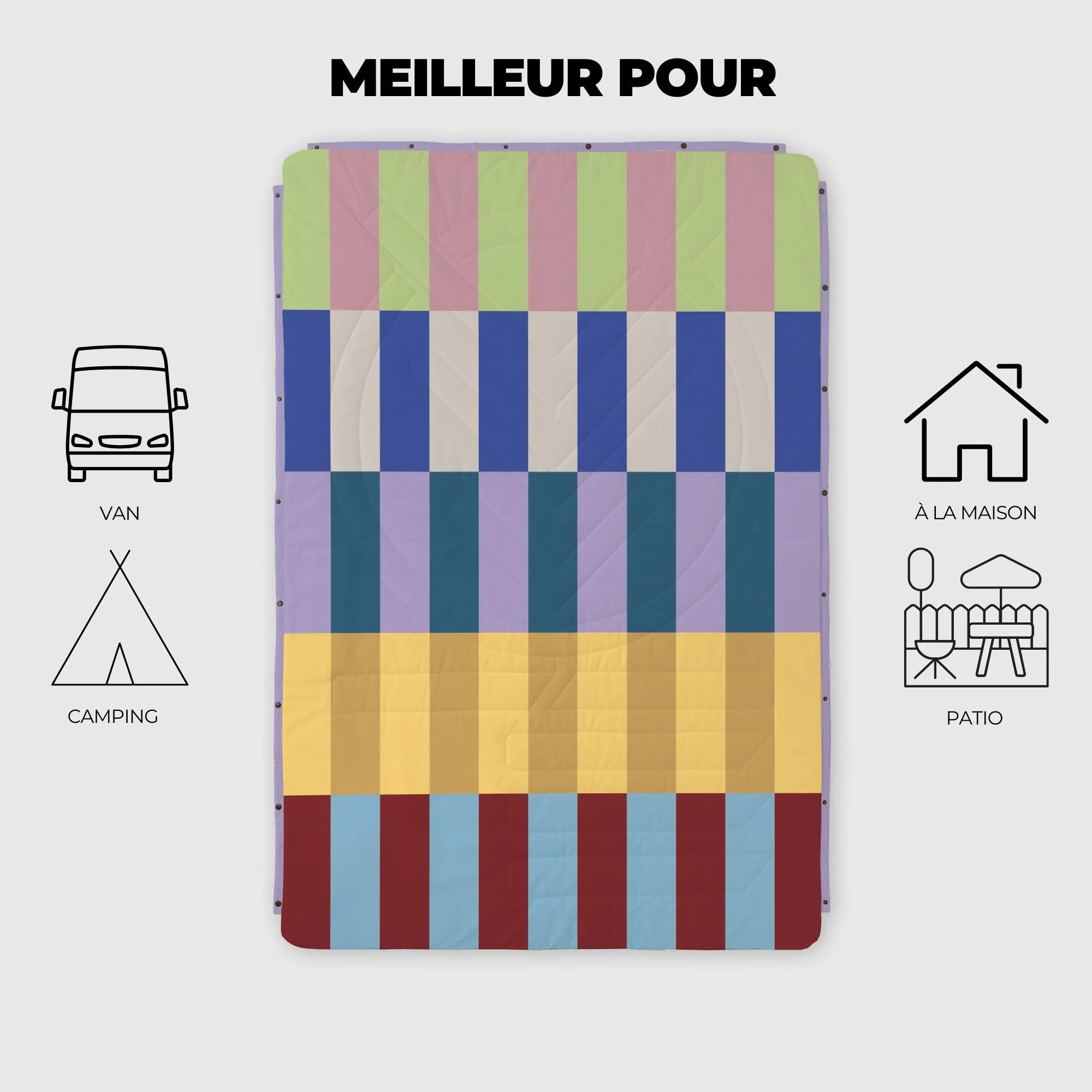 Une couverture chaude 4 en 1 matelassée et résistante à l’eau à utiliser à l’intérieur et à l’extérieur, pour les trips en van, le camping, les voyages et même à la maison. Ripstop recyclé d’un côté et polaire CloudTouch® brossée de l’autre. Durable. Résistante aux taches. Lavable en machine.