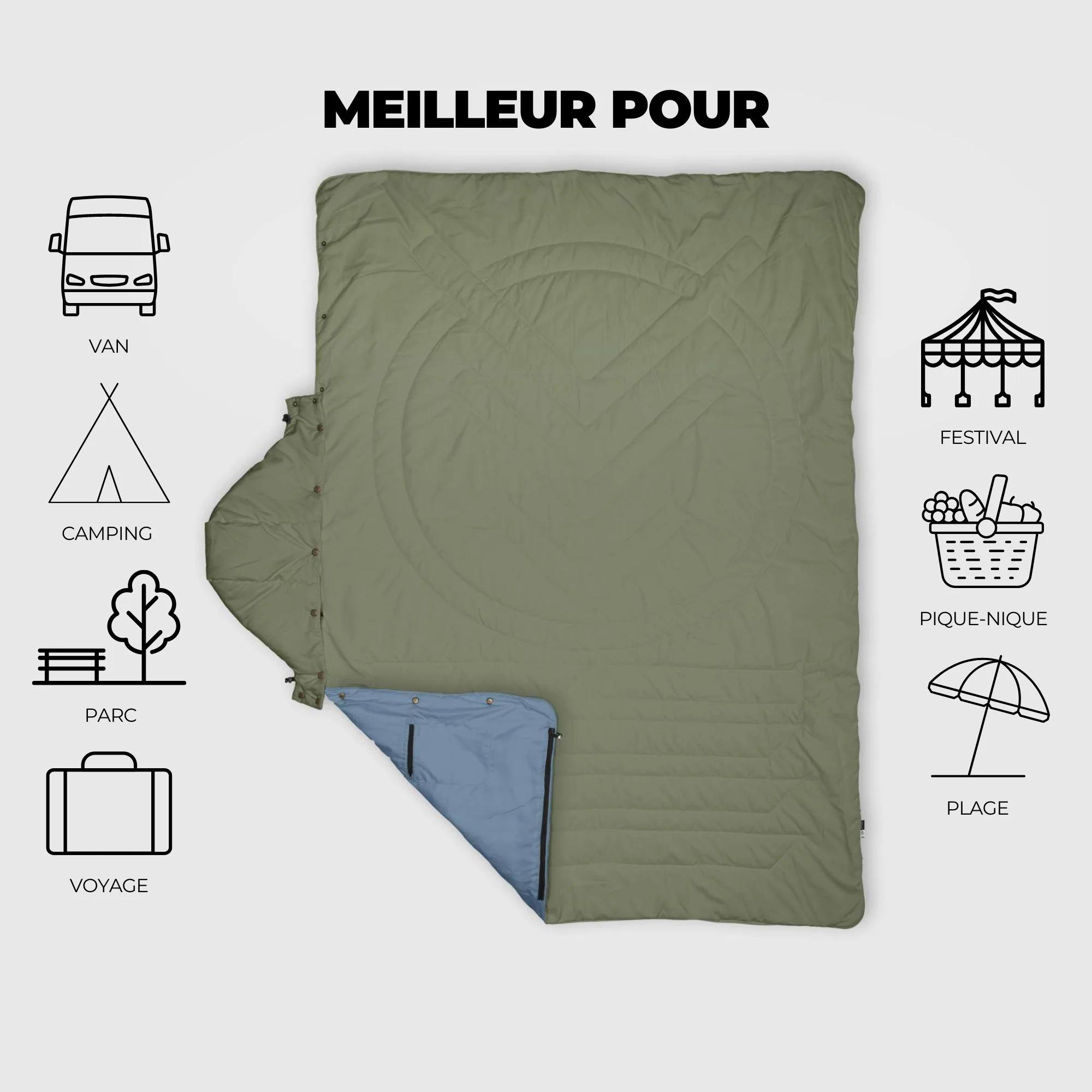 Soyez le premier à laisser votre avis sur “VOITED Recycled Ripstop Travel Blanket – Olive/Mountain Spring”