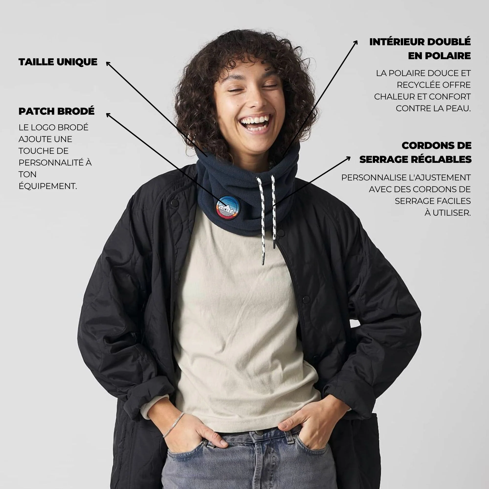 Le Snood est ton allié pour la chaleur et le confort, conçu pour protéger ton cou du froid dans toutes les conditions. Fabriqué à partir de polaire Sherpa et de polaire 100 % recyclées, il allie un design durable à une isolation de première qualité. Doté d’un cordon de serrage réglable pour un ajustement parfait, ce snood taille unique est facile à porter et te garde au chaud où que tu ailles.